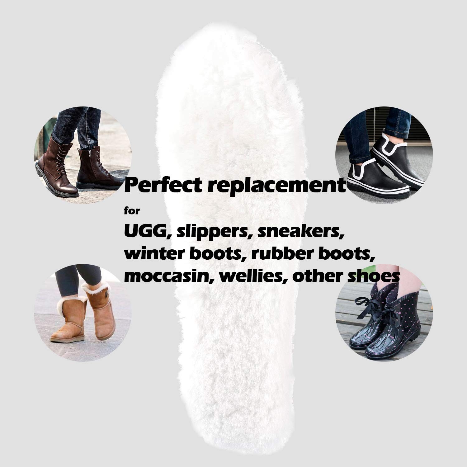 Winter Merino Wool Insoles for Men Soft Warm Shoe Inserts Fleece Shoe Pads Re...