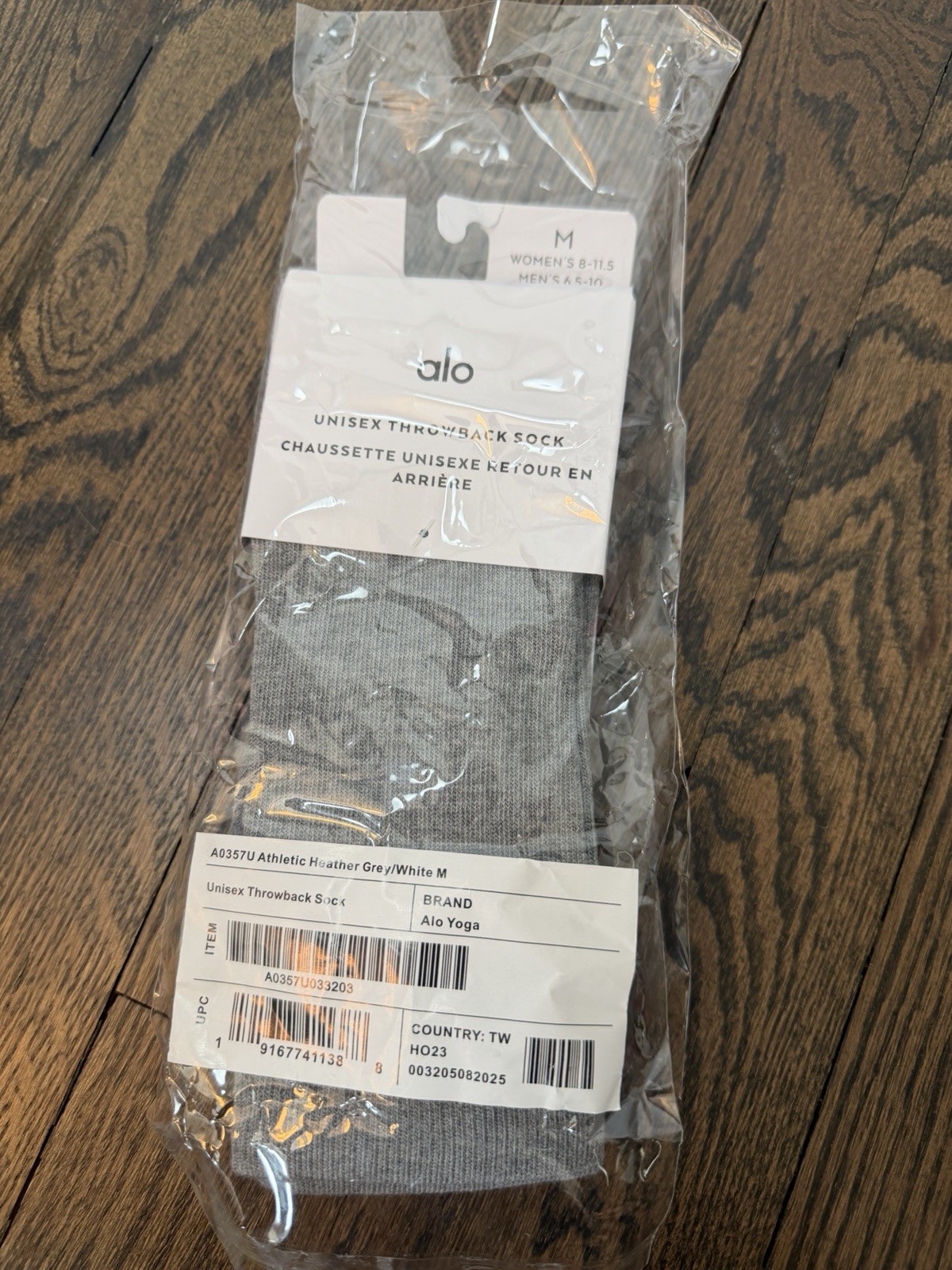 как выглядит Alo Yoga Throwback Sock M Unisex Athletic Heather Grey/White Brand New In Bag фото