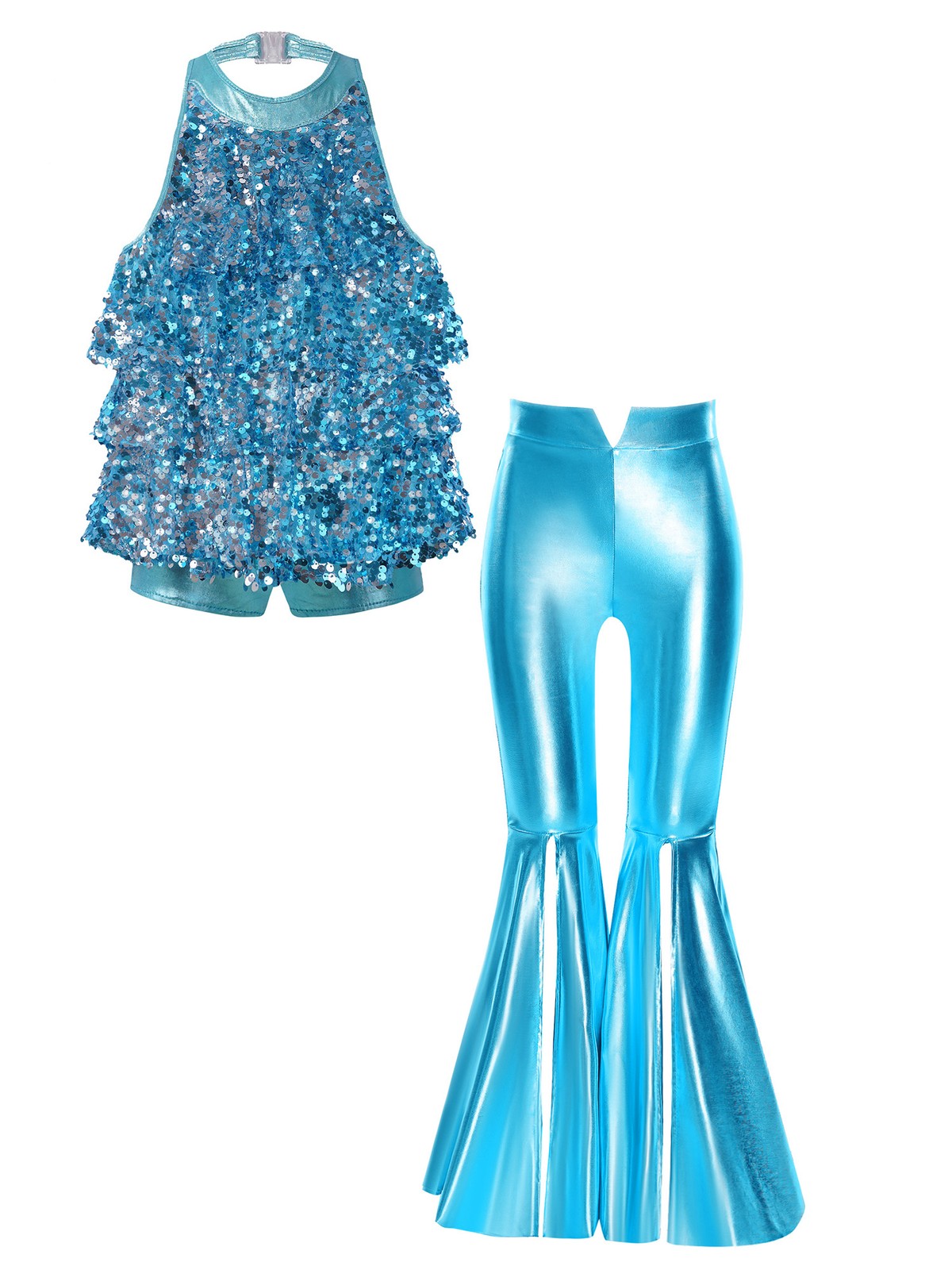 Girls Ballroom Metallic Outfits Disco Costume Tango Dancewear Ballet Latin Kid