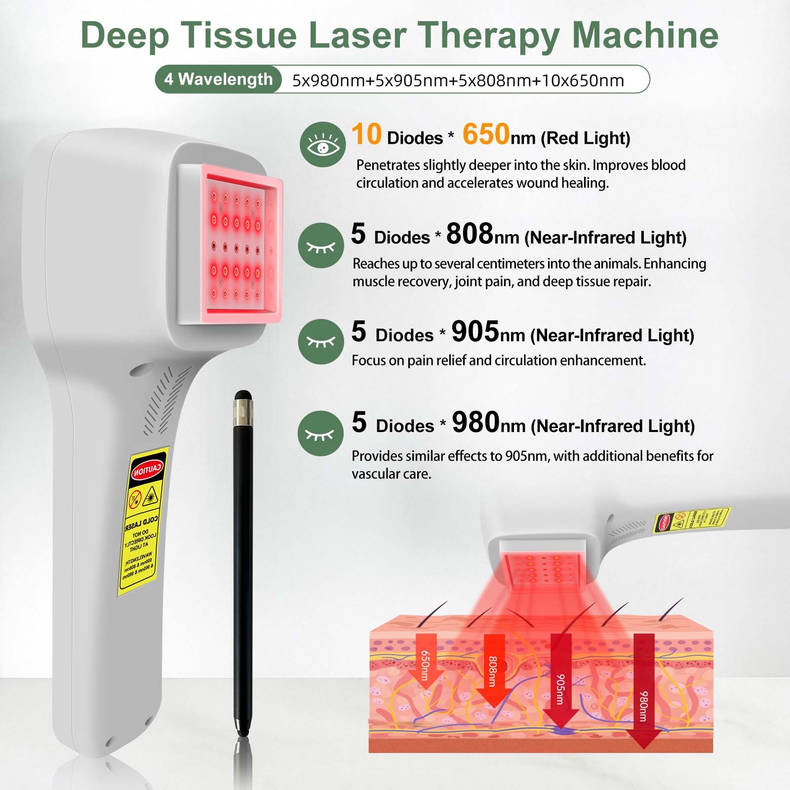 Wavelength: 650nm+808nm+905nm+980nm
