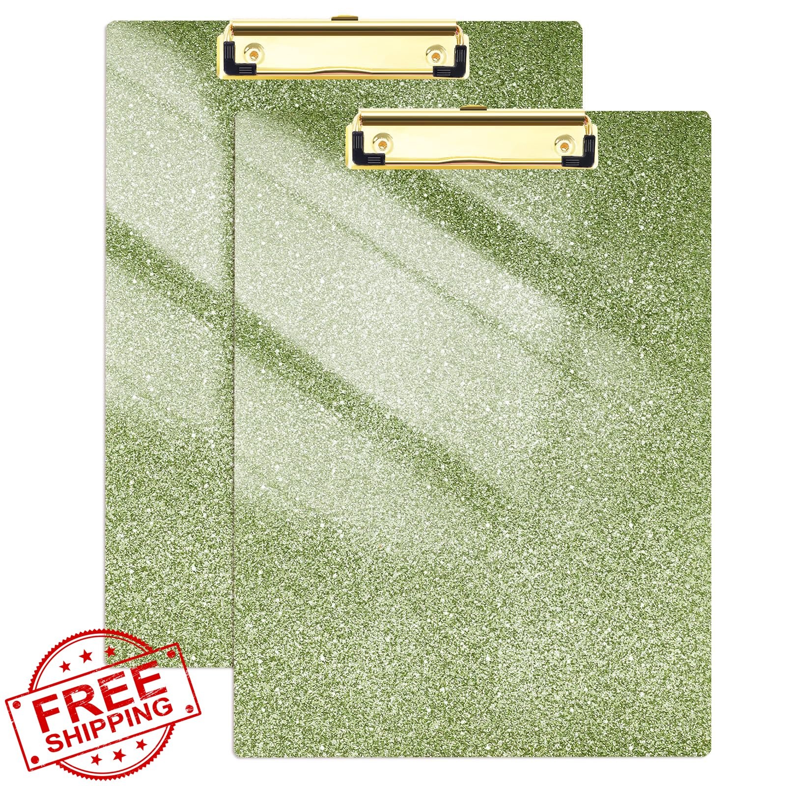 Juvealoe Glitter Clipboards Set of 2 - 8.5x11 Acrylic, Gold Clip, Grass Green