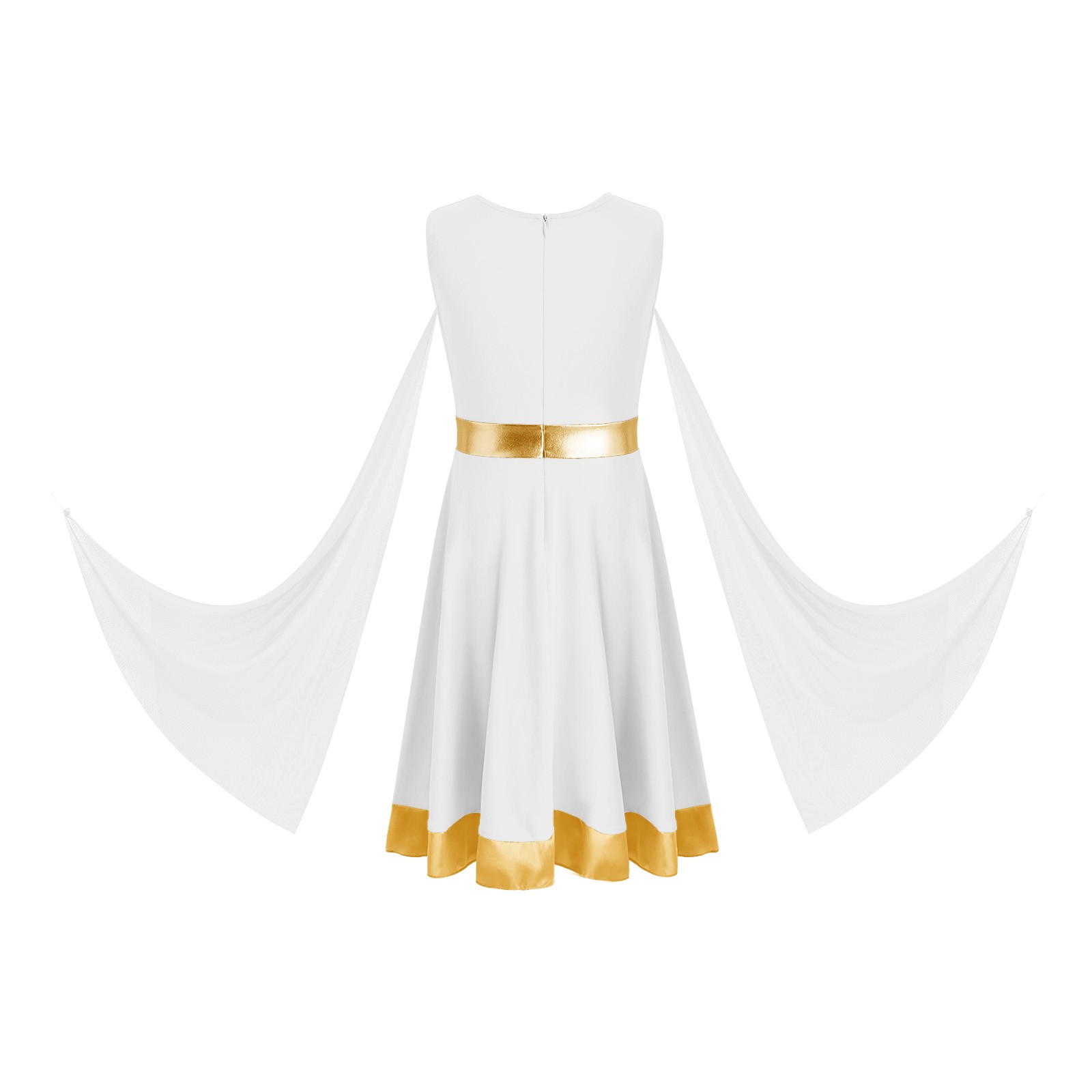 Kids Girls Costume Stage Dress Lyrical Robe Mesh Drapes Dance Dancewear Praise