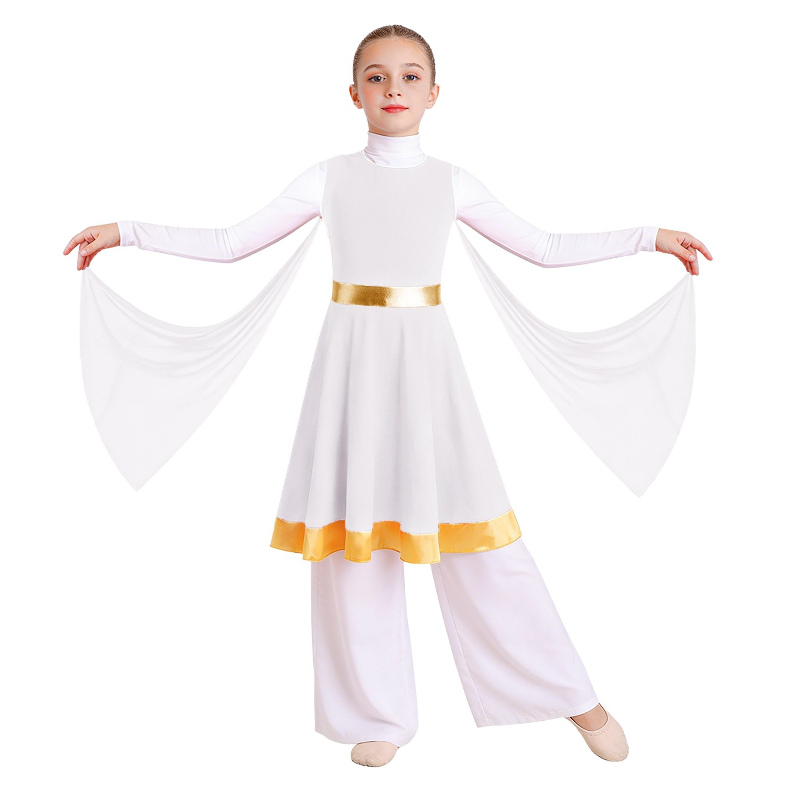 как выглядит Kids Girls Costume Stage Dress Lyrical Robe Mesh Drapes Dance Dancewear Praise фото