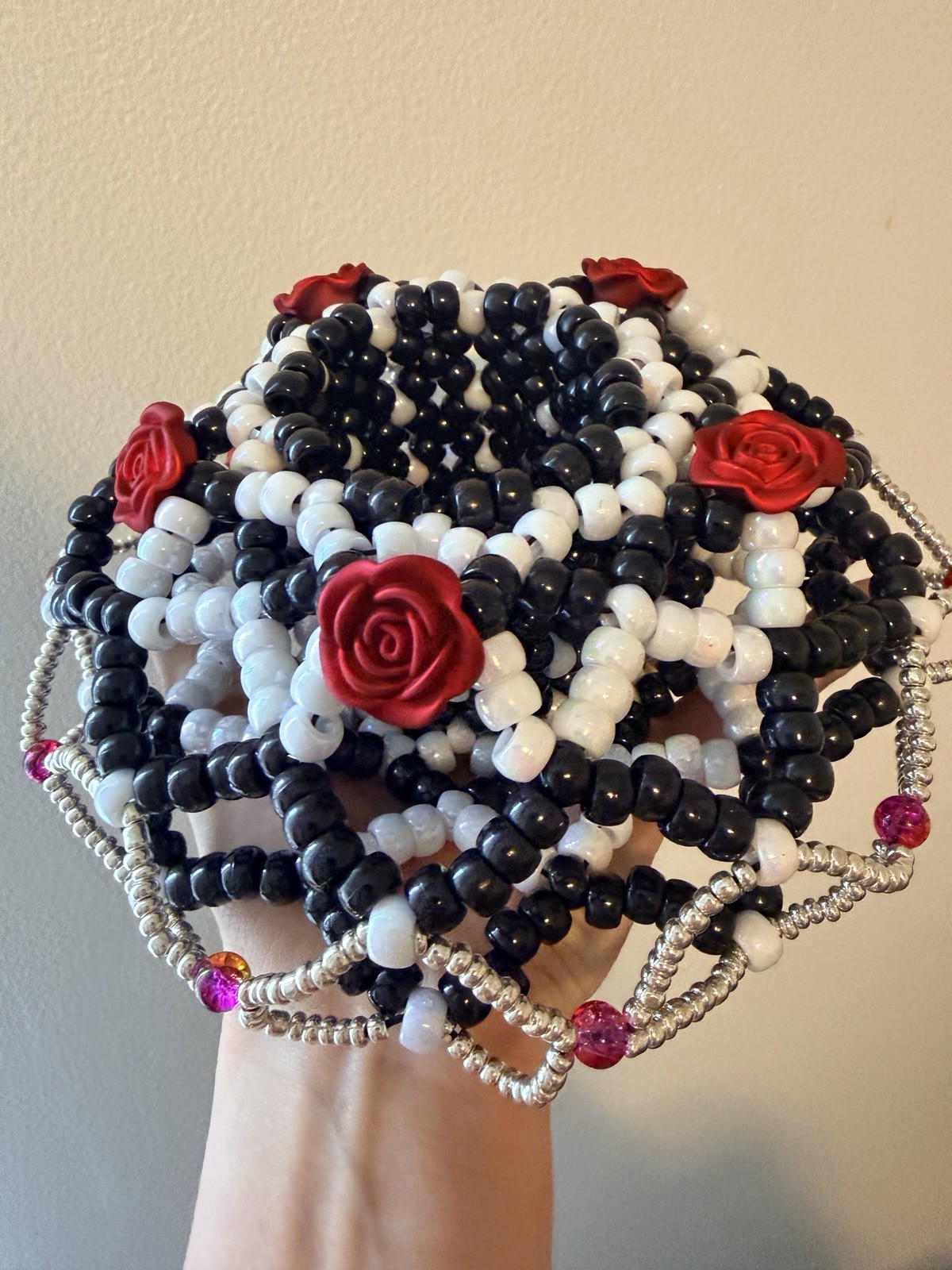 Kandi cuff bracelet pony beads rave Plur Edm stretchy string Black And White