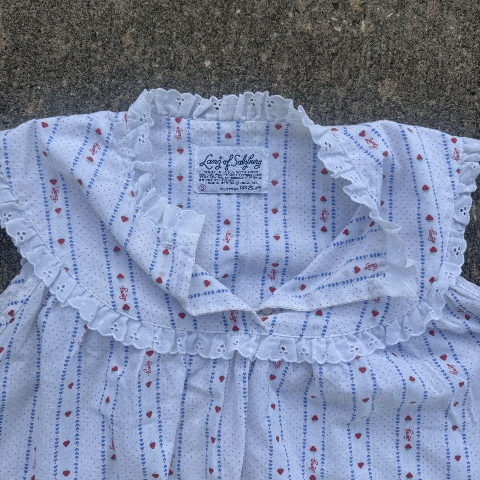 как выглядит VTG Lanz of Salzburg Eyelet Lace Sleeve Nightgown Cottagecore Strawberry Heart фото