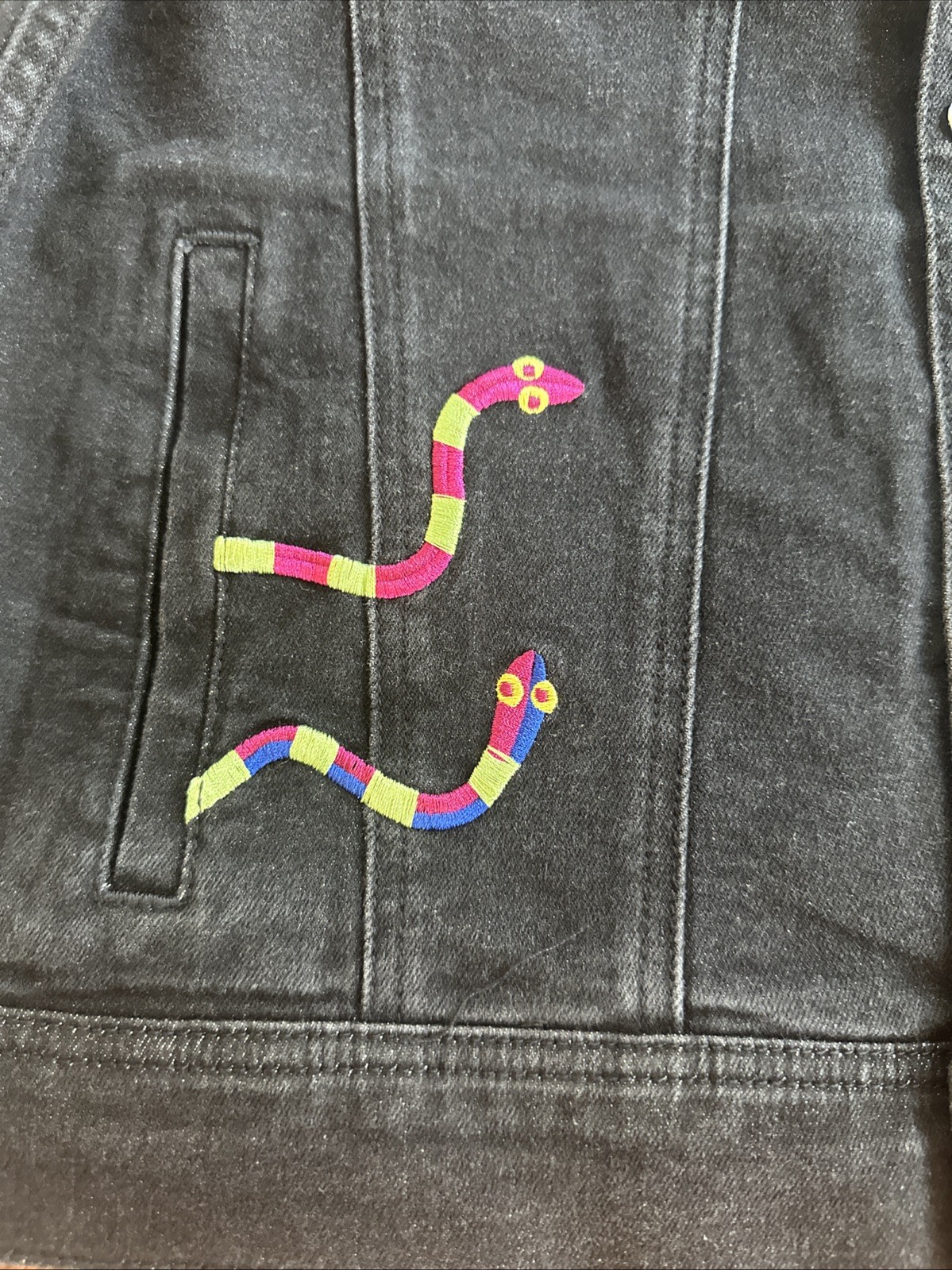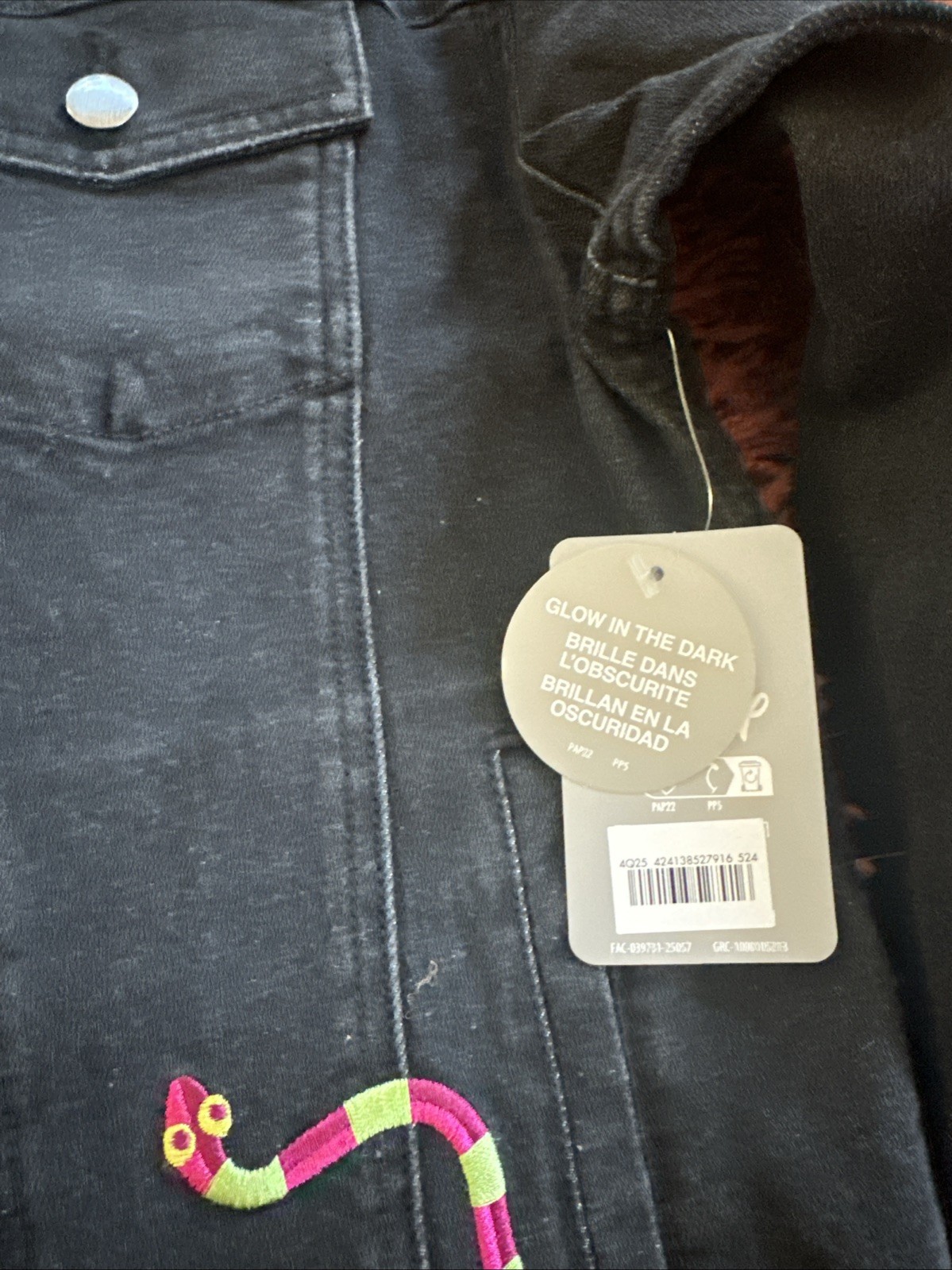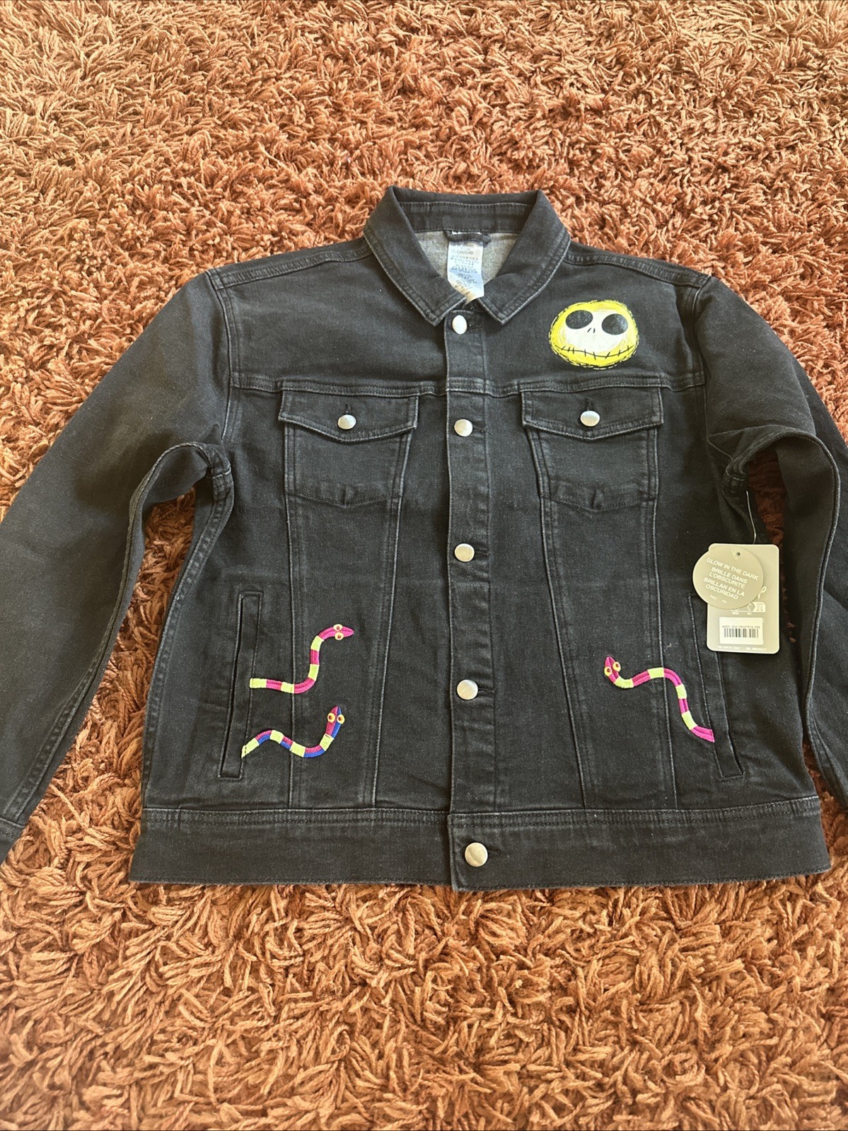 как выглядит Nightmare Before Christmas Unisex Size 13/14 Kids Black Denim Jacket фото