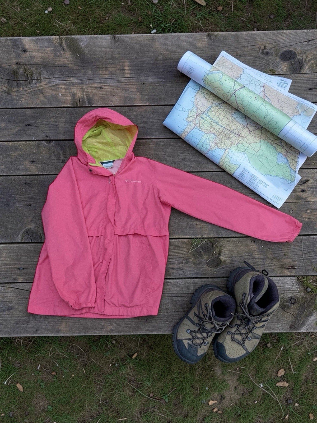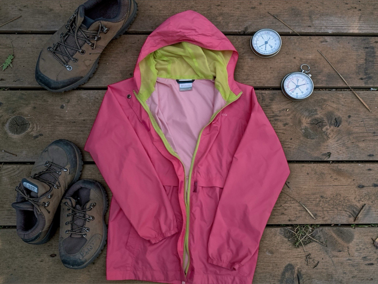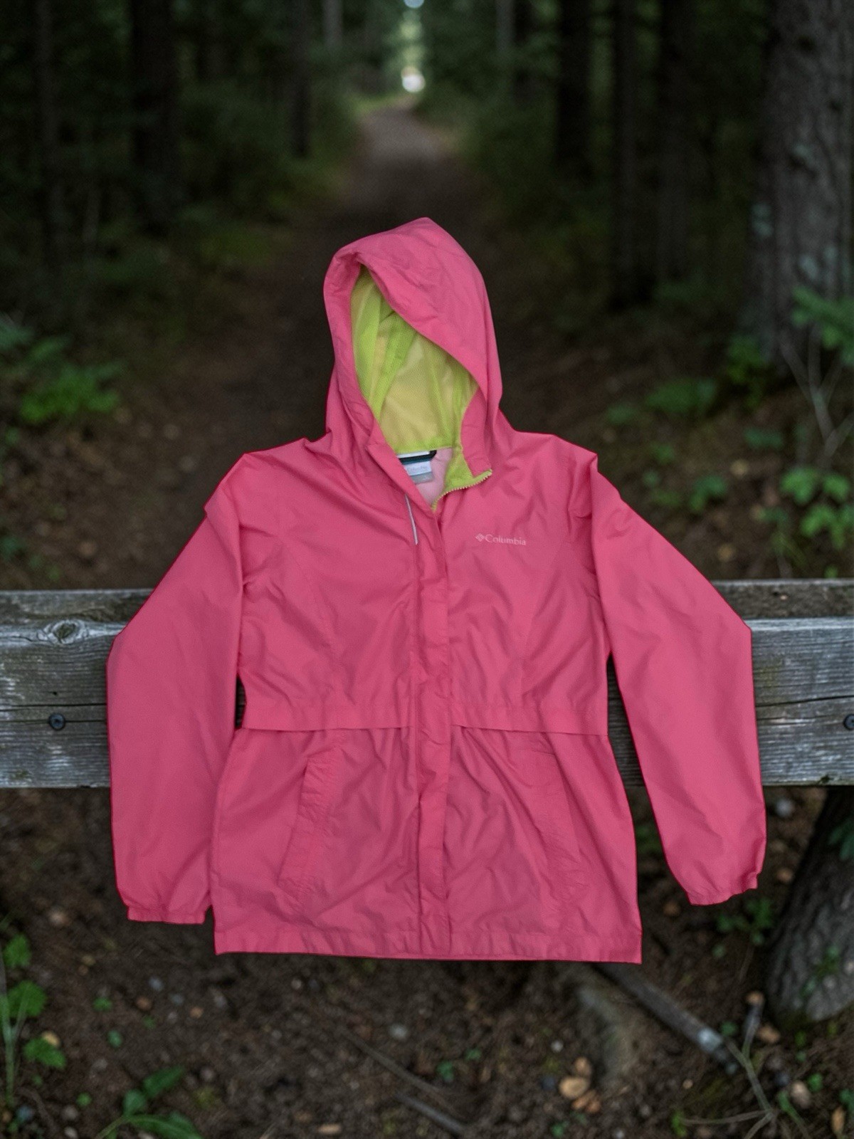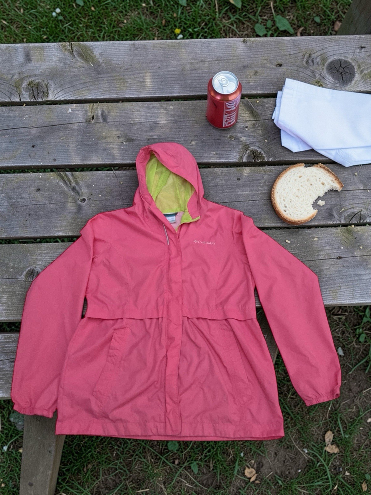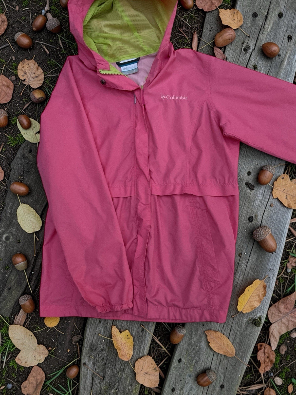 Columbia Youth L 14-16 Pink Hooded Rain Jacket Girls Lightweight Waterproof