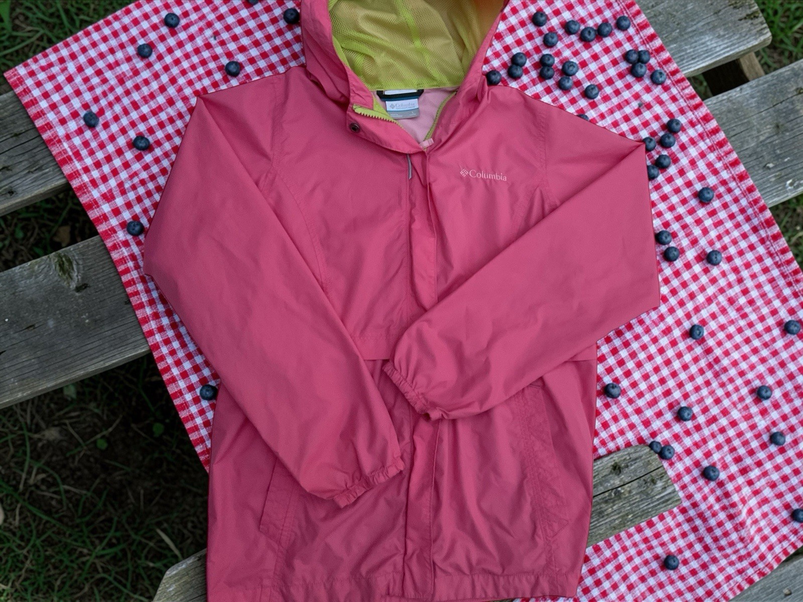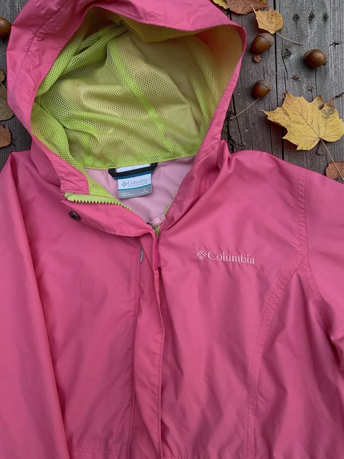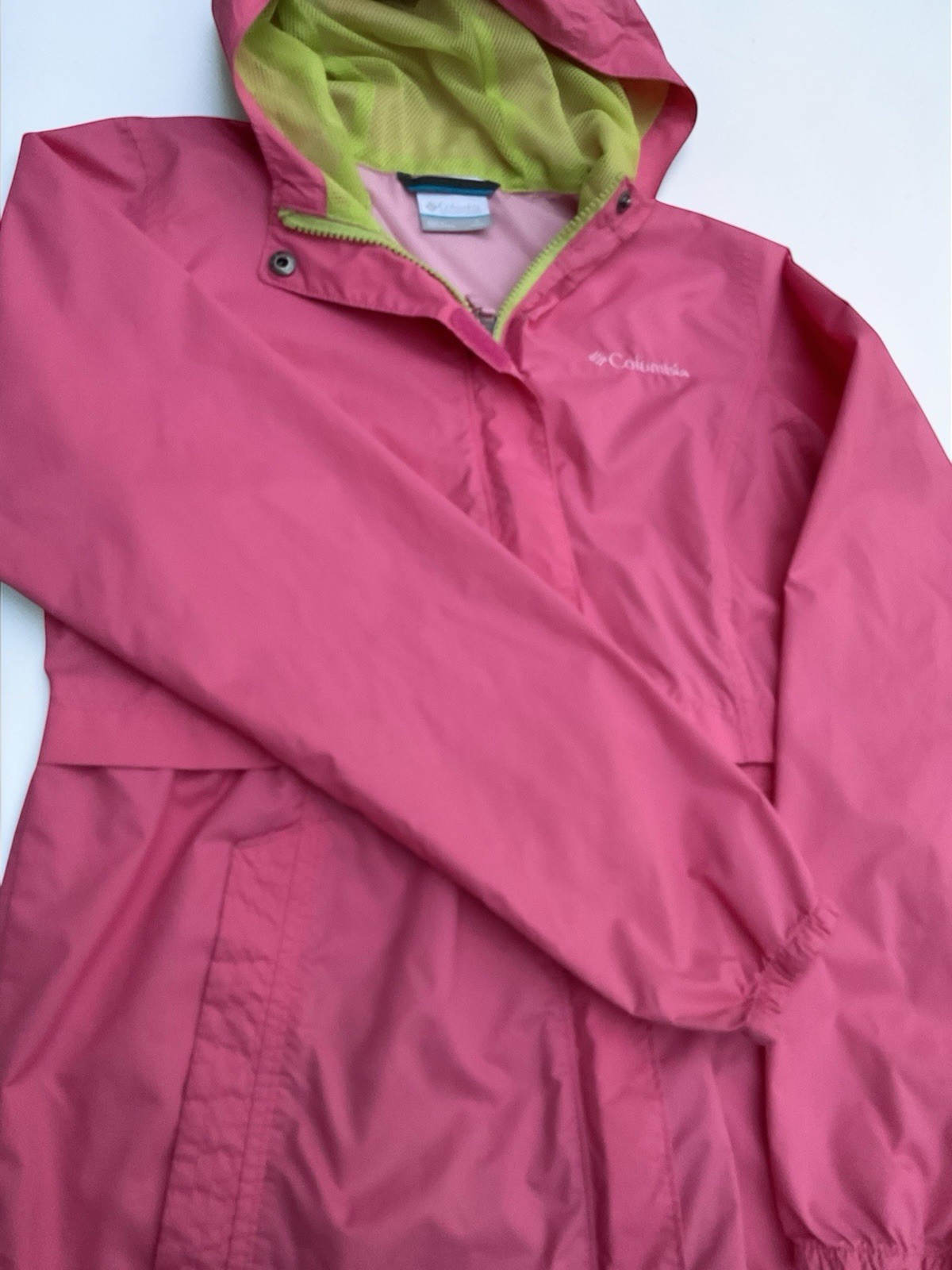 как выглядит Columbia Youth L 14-16 Pink Hooded Rain Jacket Girls Lightweight Waterproof фото