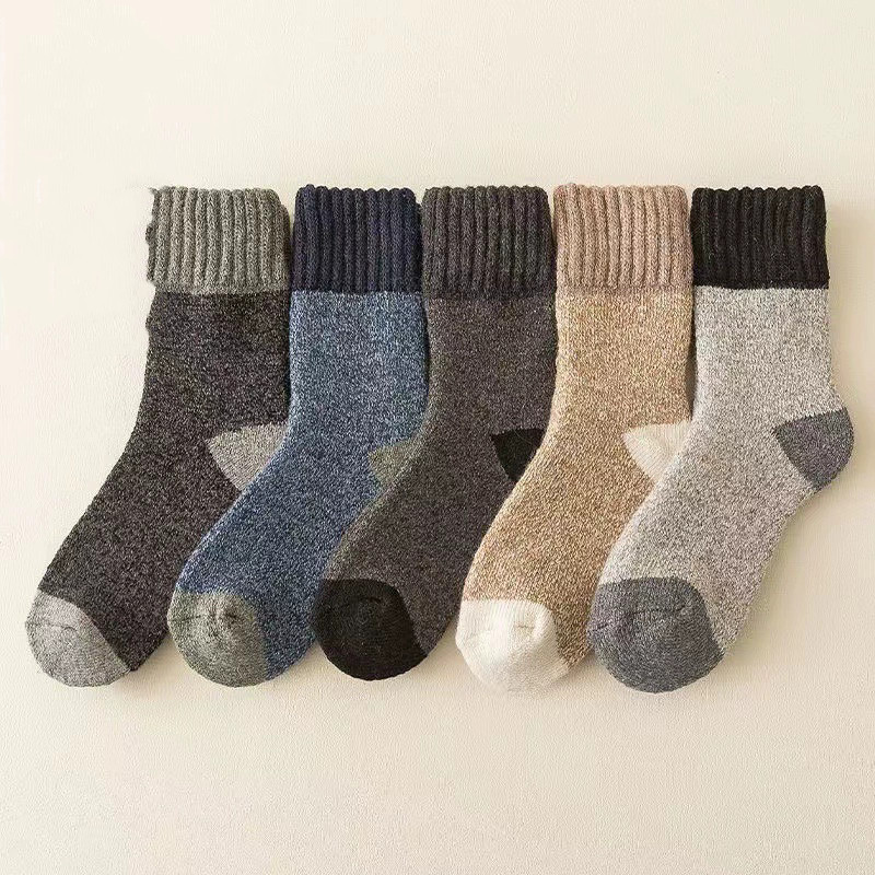 как выглядит Men Wool Crew Warm Thick Heavy Sport Soft Solid Classic Socks Design Boots 5Pack фото