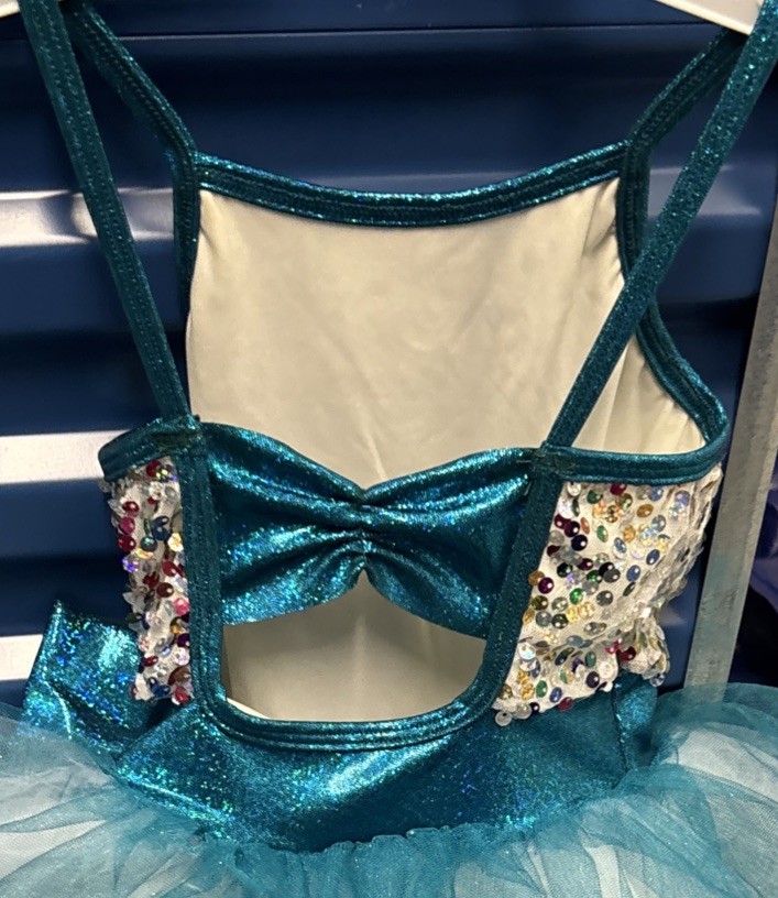 как выглядит Curtain Call Girls Dance Costume Size CSM Sequins Teal White Tap Ballet Costume фото