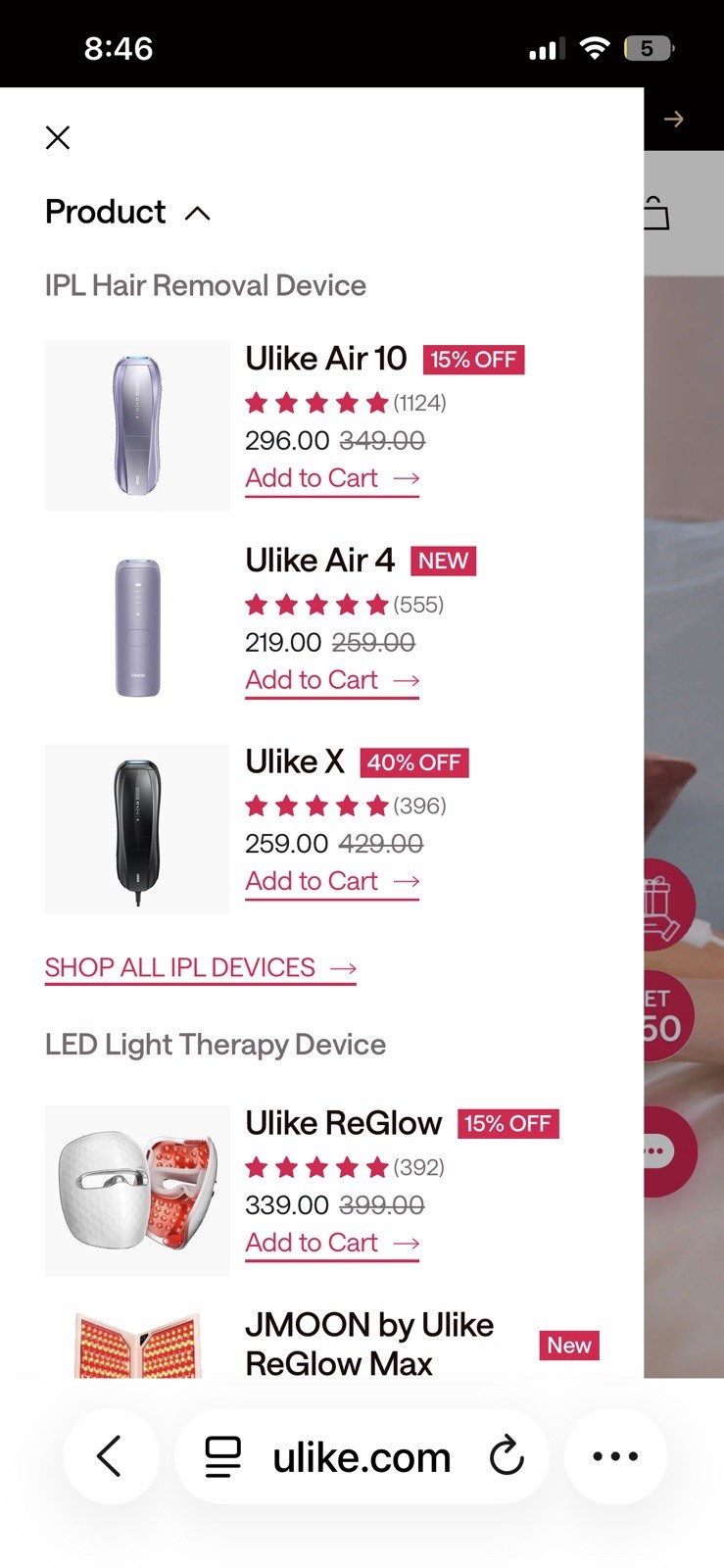 Ulike Air 4 IPL Hair Removal Device Purple w/ Sunglasses Accessories