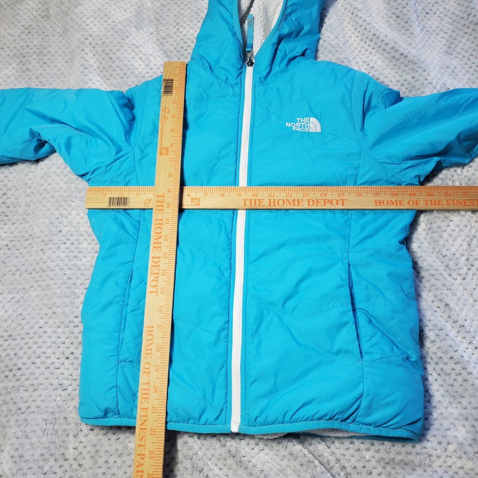 как выглядит The North Face Girls Reversible Fleece Hooded Jacket Girls Large 14/16 Turquoise фото