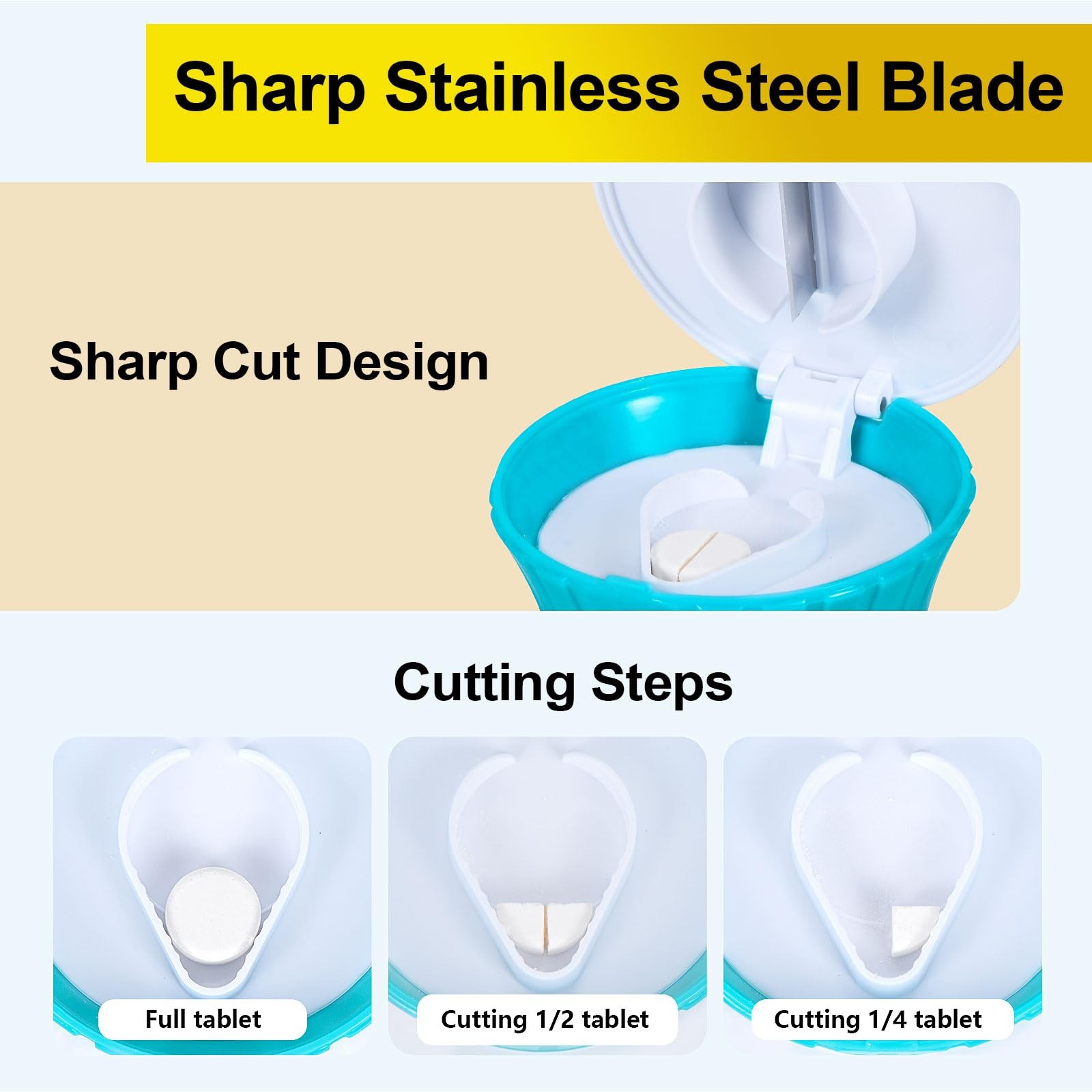 Pill Cutter and Splitter for Small or Large Pills - 3 in 1 - Tablets Blue