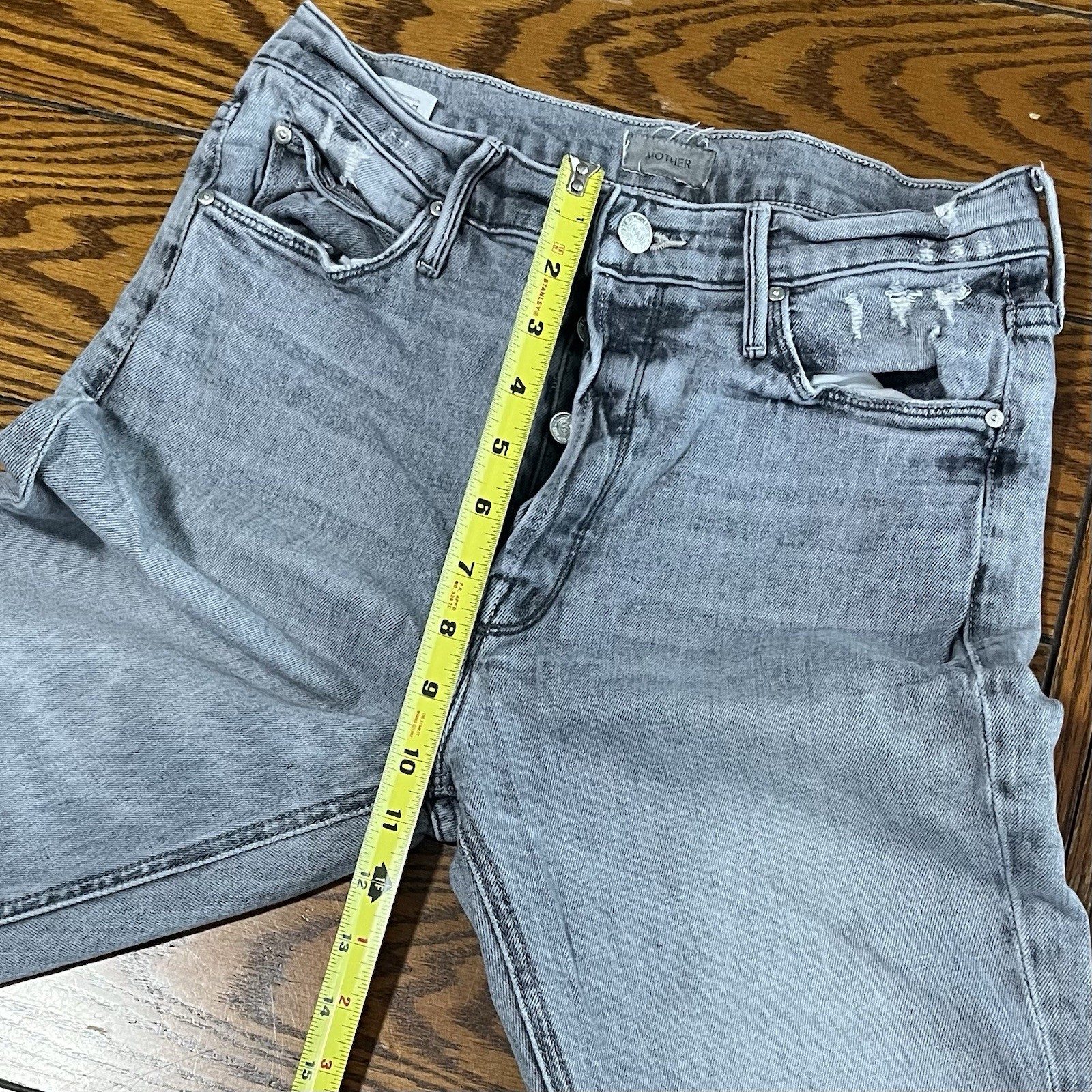 как выглядит Mother The Button Fly Dazzler Ankle Shadows in The Grass Jeans Gray Size 28 фото