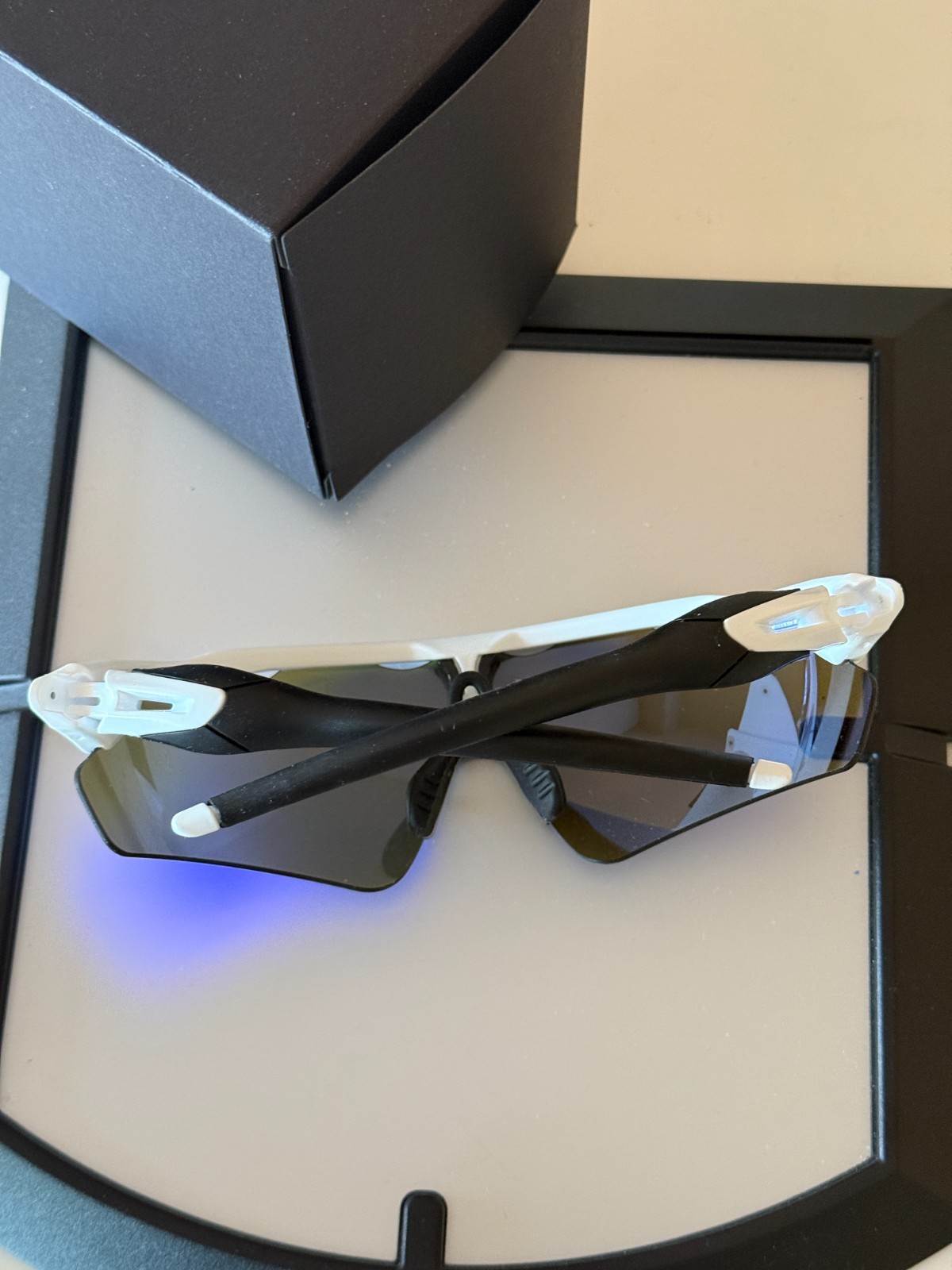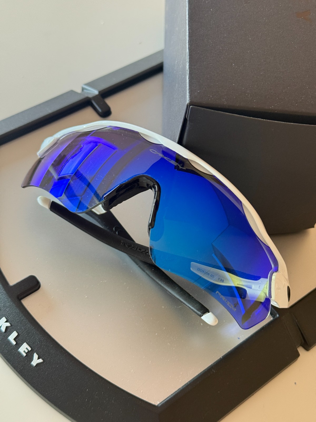как выглядит Oakley OO9208 Radar EV Path Sunglasses White Frame Prizm Sapphire Lens фото