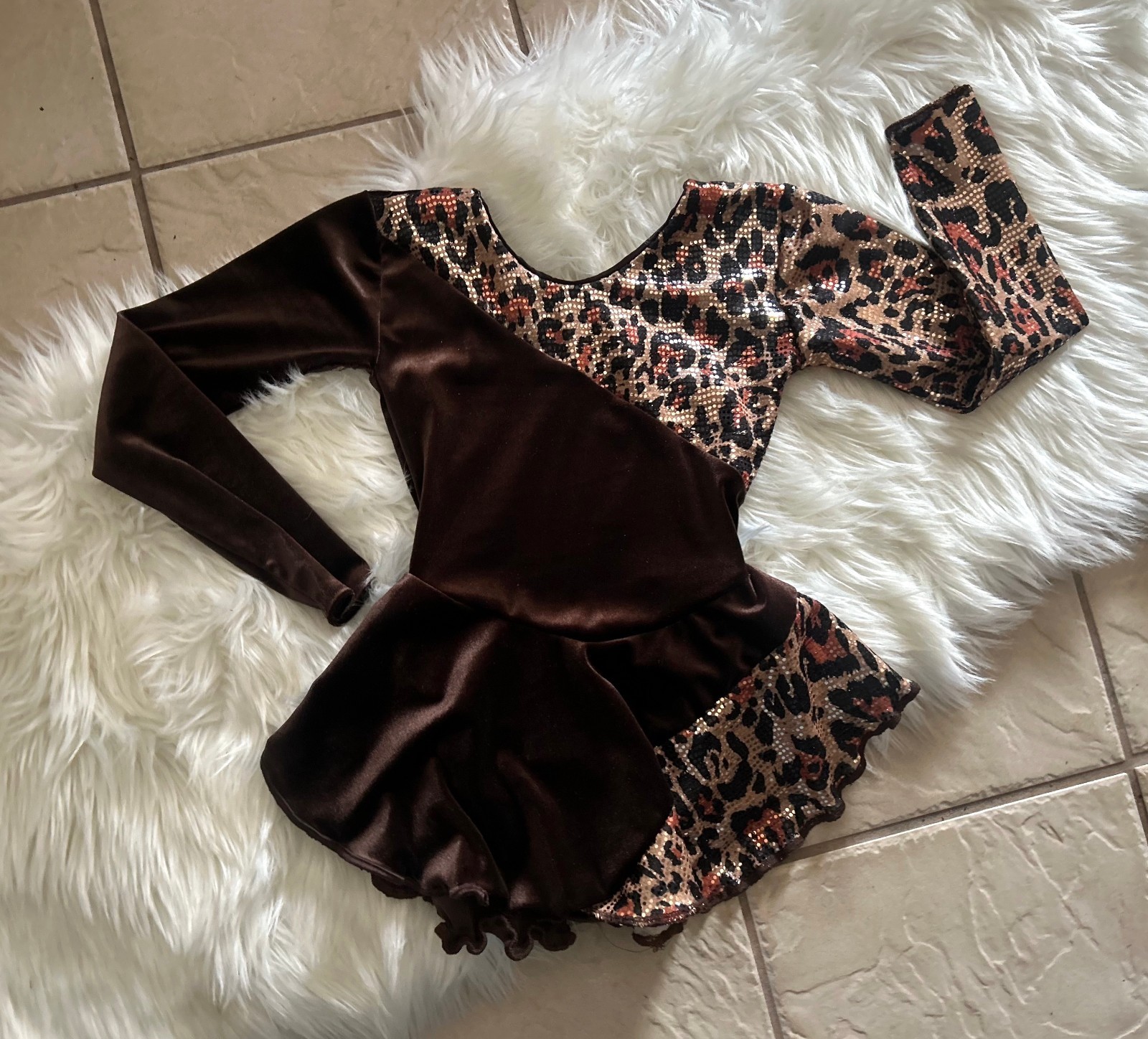 NEW Girl BROWN VELVET Sequin LEOPARD Animal Competition FIGURE ICE SKATING Dress