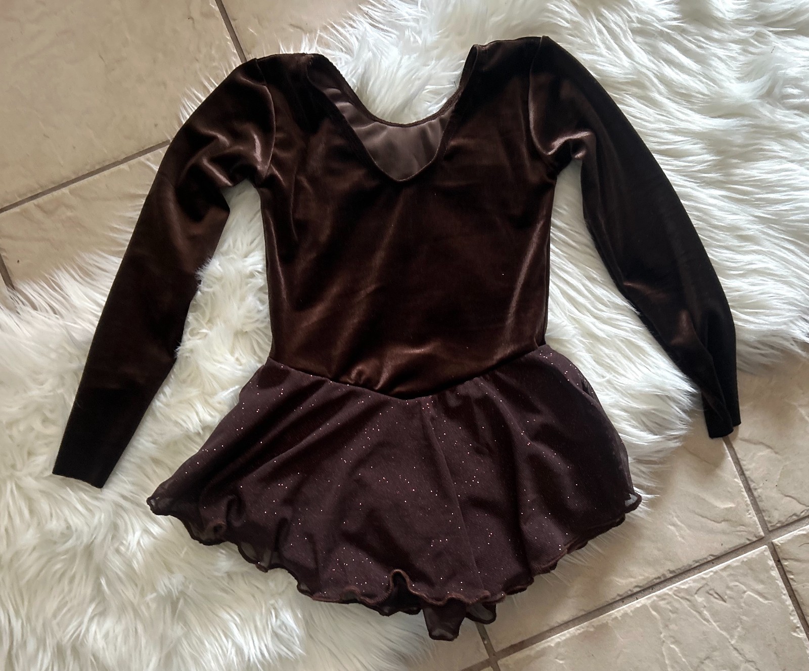 GIRLS Brown VELVET Glittery CHIFFON Skirt Competition FIGURE ICE SKATING Dress