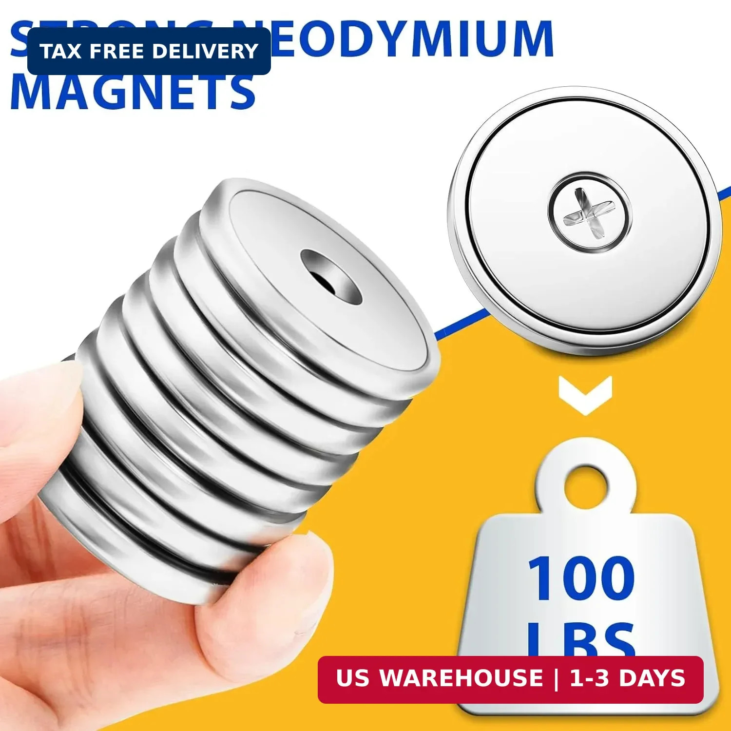 8Pack Neodymium round Base Cup Magnet 100LBS Strong Rare Earth Magnet Heavy Duty