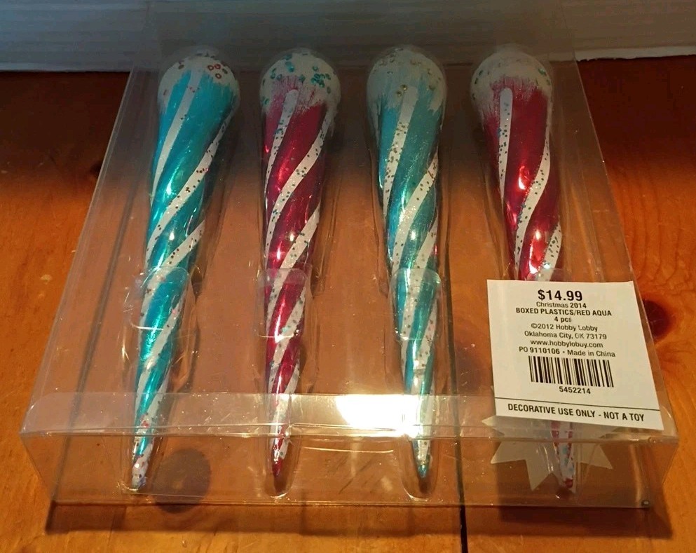 4 Christmas Ornament Glass Drop Swirl Pink Red Aqua Hobby Lobby Bonus Set