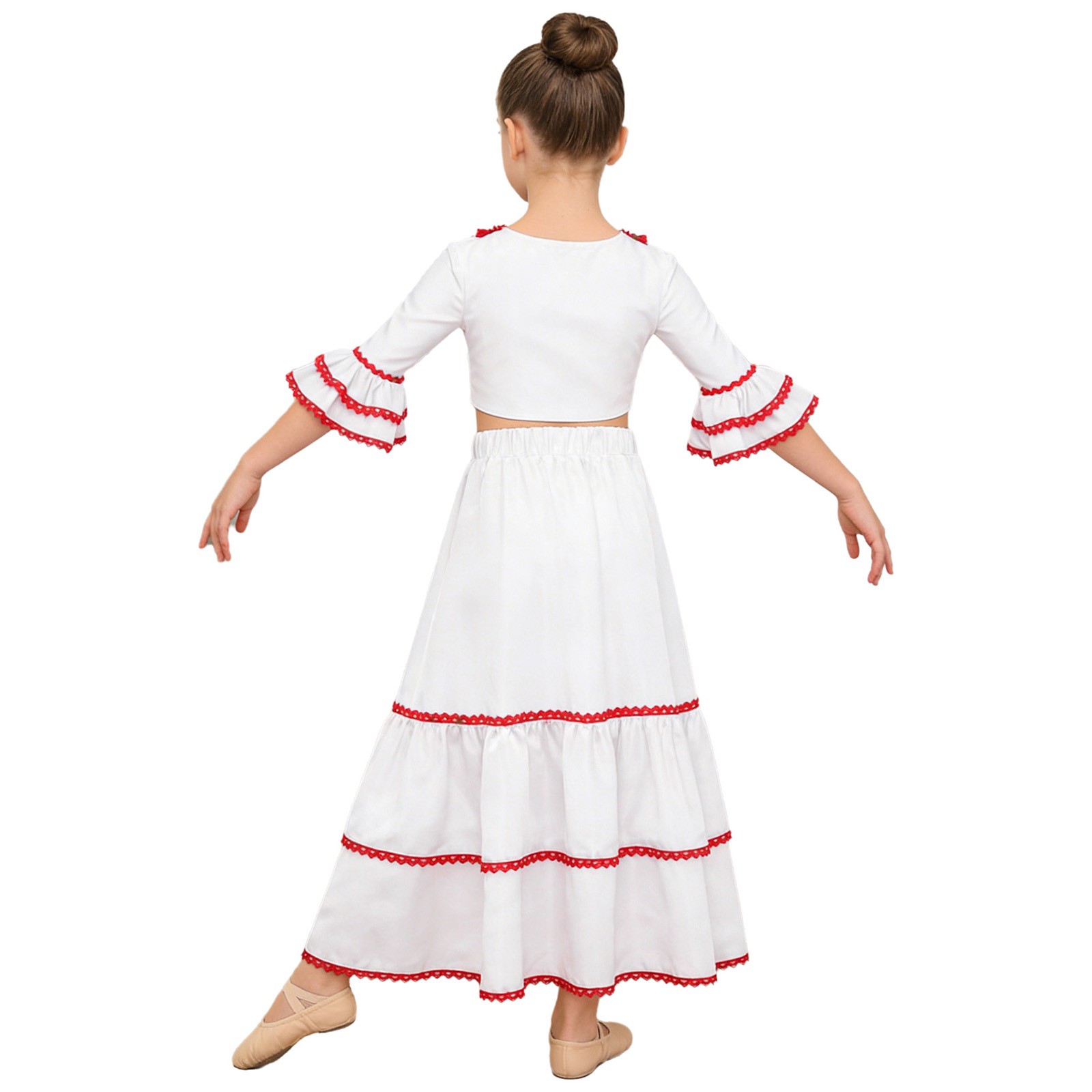 Girls Flamenco Dance Swing 2-Piece Halloween Costume Performance Outfit Stage