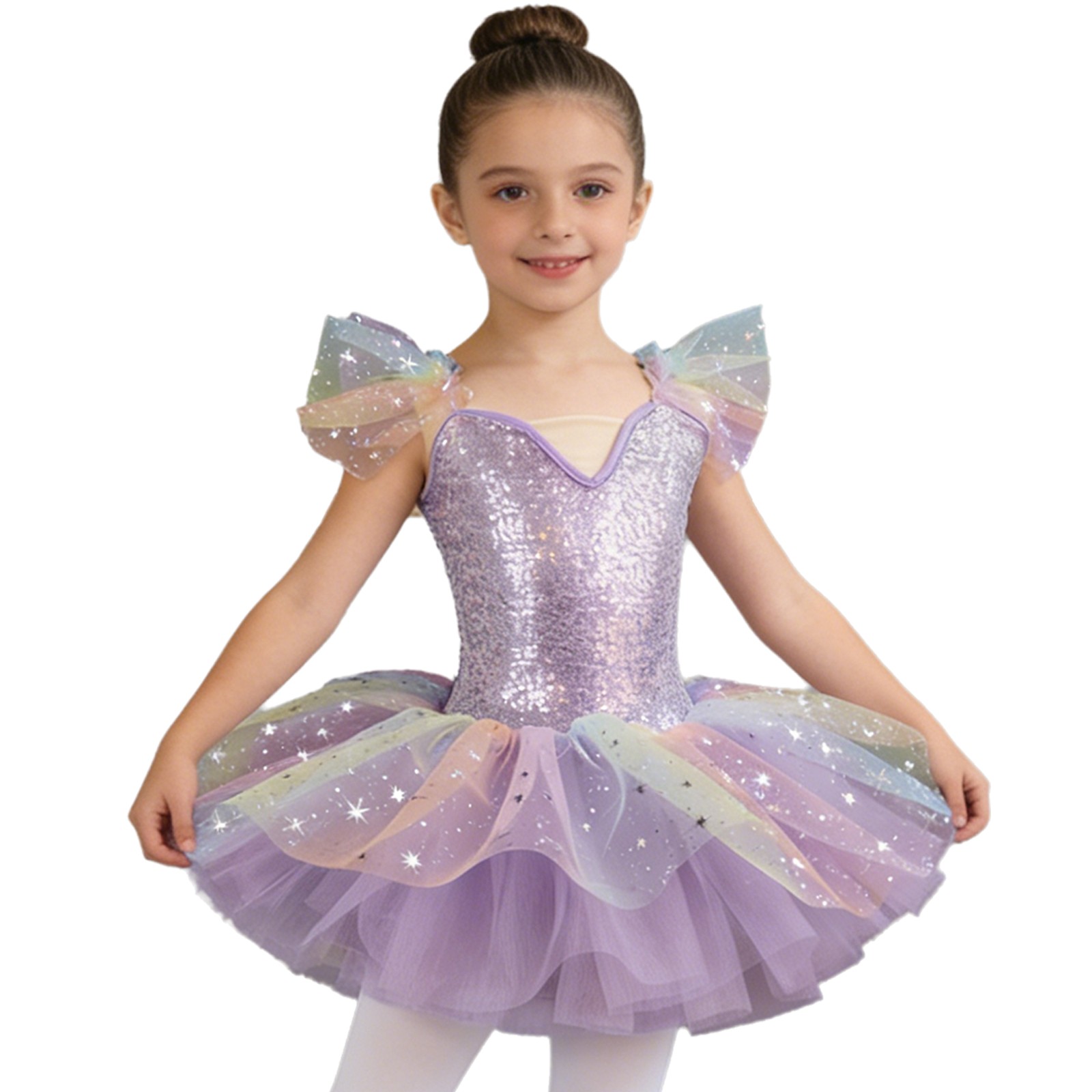 Girls Dancewear Dreamy Sparkle Leotards Princess Ballerina Tutu Dress Birthday