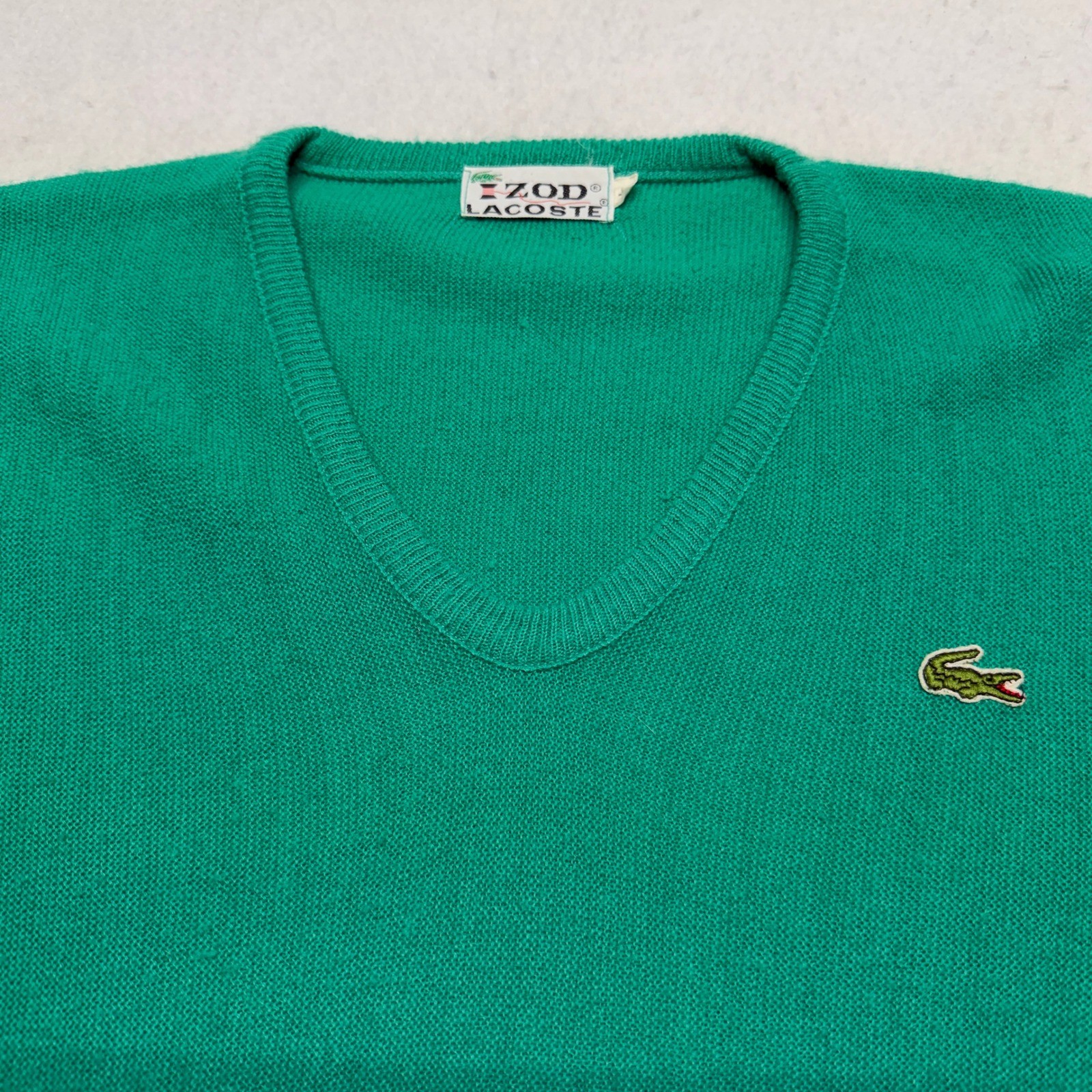 как выглядит Vintage Izod Lacoste V-Neck Sweater Green Mens Large 80s 90s Crocodile Logo фото