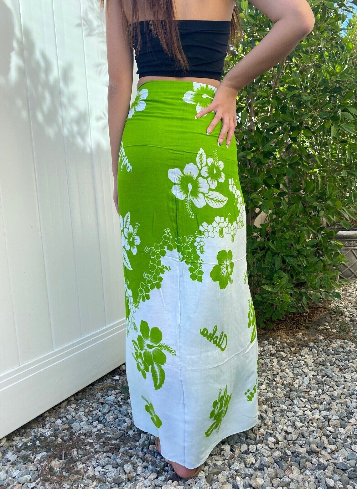 Sarong Green White Hibiscus Hawaiian Pareo Beach Pool Luau Cruise Wrap Dress