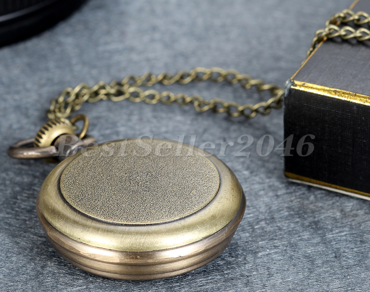 Retro Steampunk Roman Numeral Dial Quartz Pocket Watch Pendant Chain Necklace
