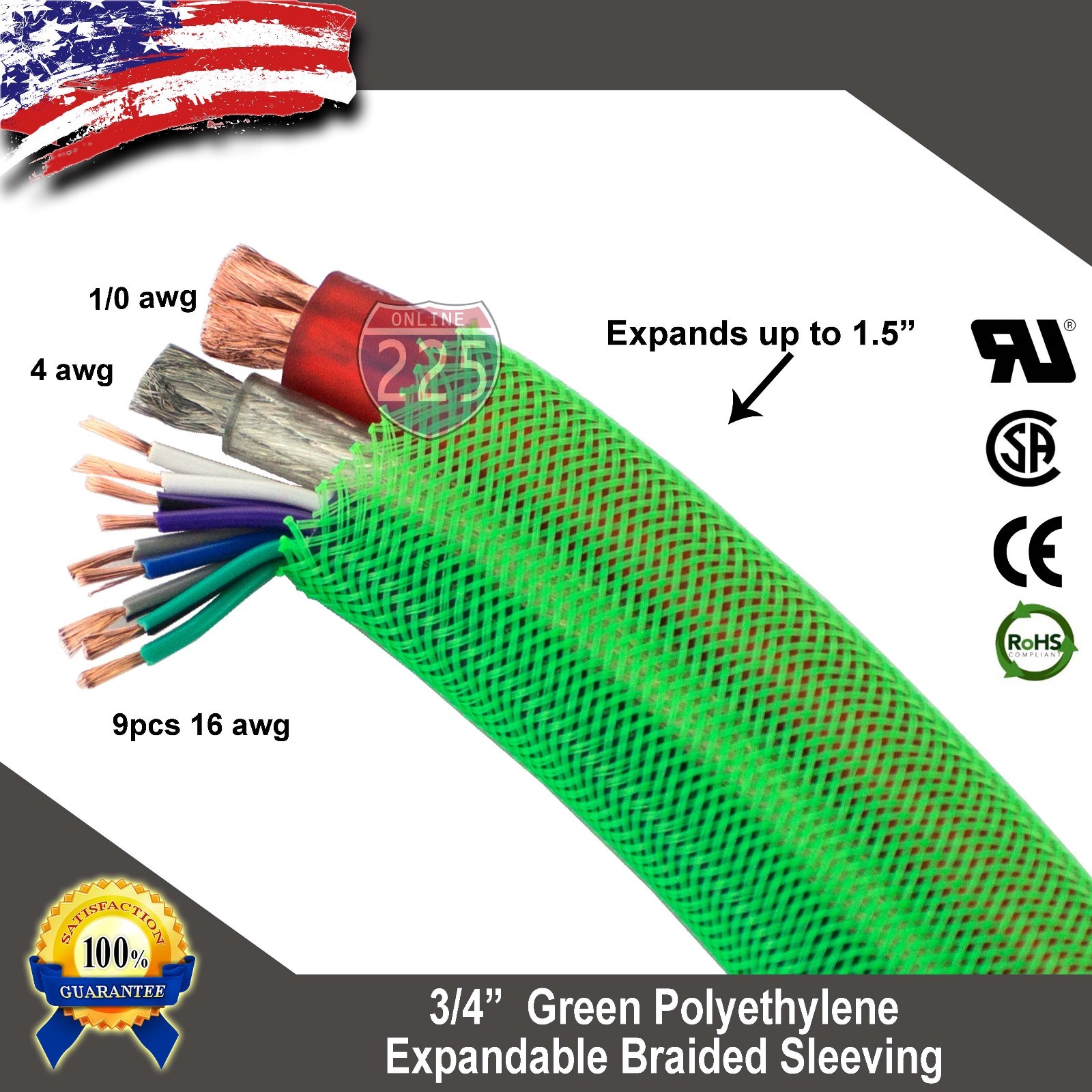 100 FT 3/4 Green Expandable Wire Cable Sleeving Sheathing Braided Loom Tubing