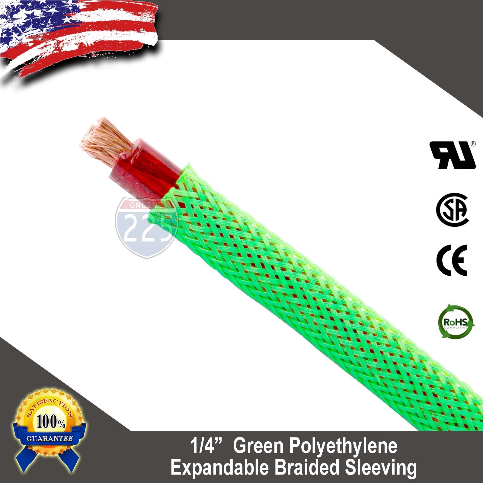 100 FT 1/4 Green Expandable Wire Cable Sleeving Sheathing Braided Loom Tubing