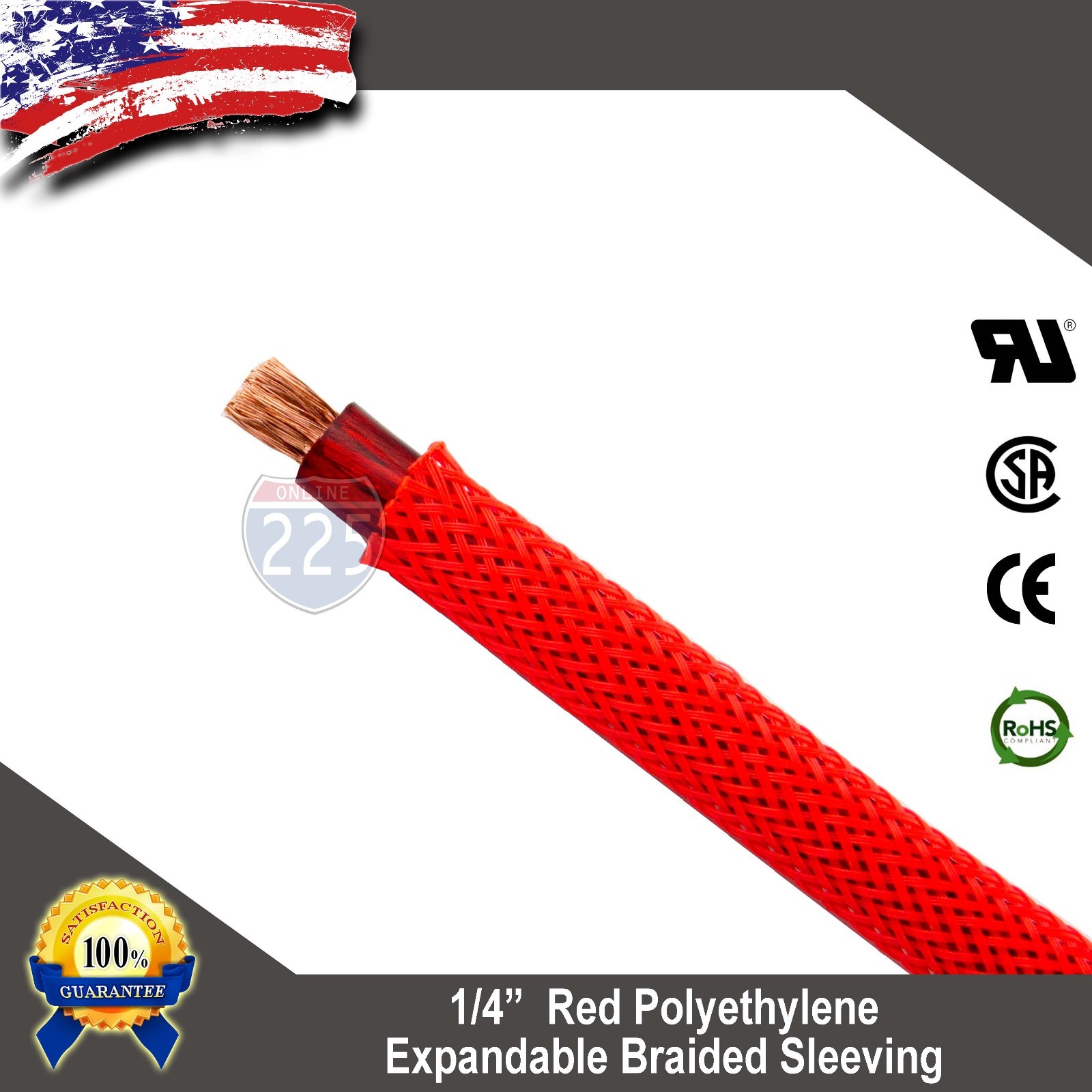 25 FT 1/4 Red Expandable Wire Cable Sleeving Sheathing Braided Loom Tubing US