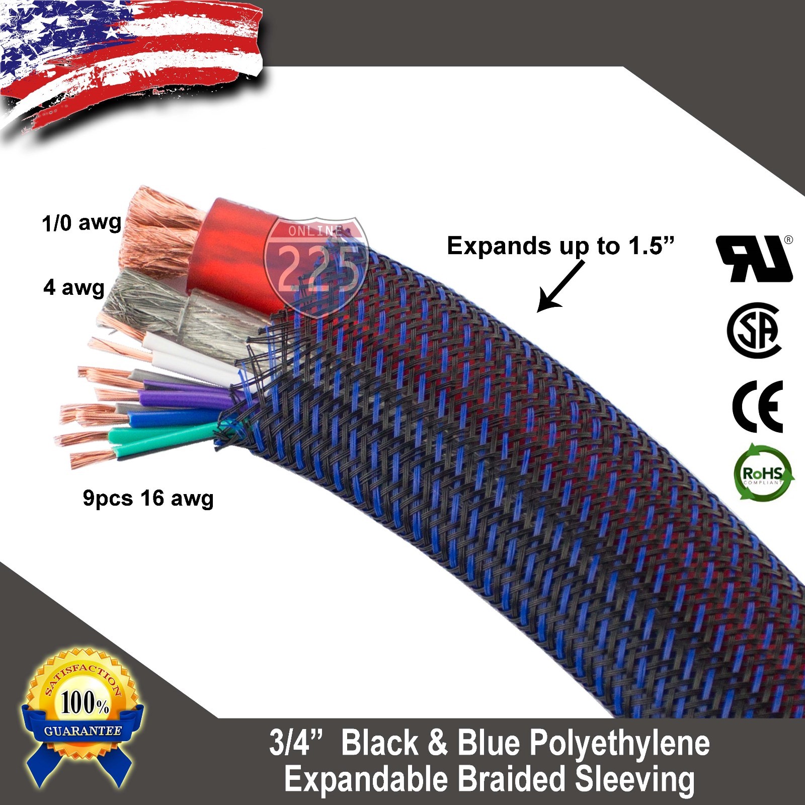 100 FT 3/4 Black Blue Expandable Wire Sleeving Sheathing Braided Loom Tubing US