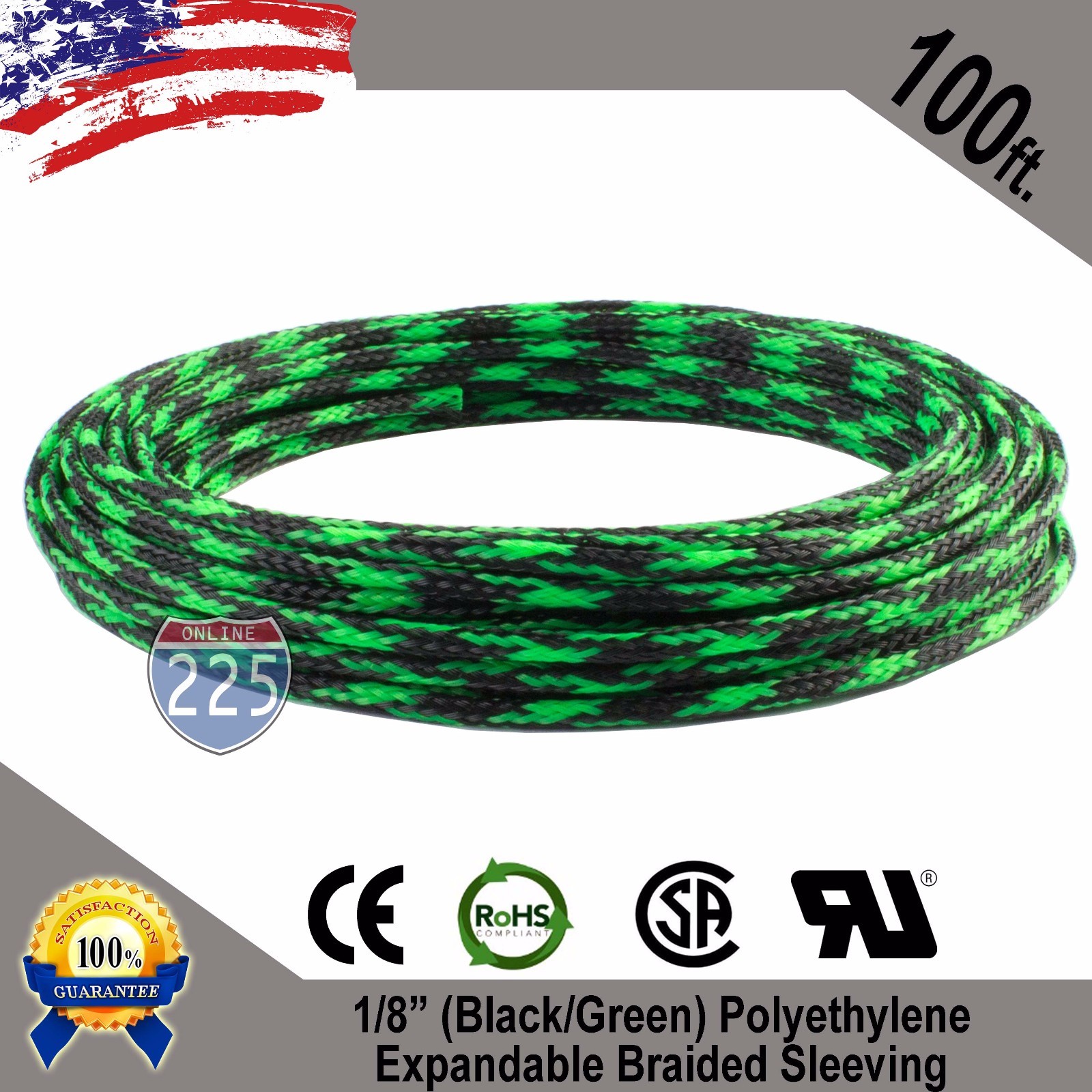 100 FT 1/8 Black Green Expandable Wire Sleeving Sheathing Braided Loom Tubing