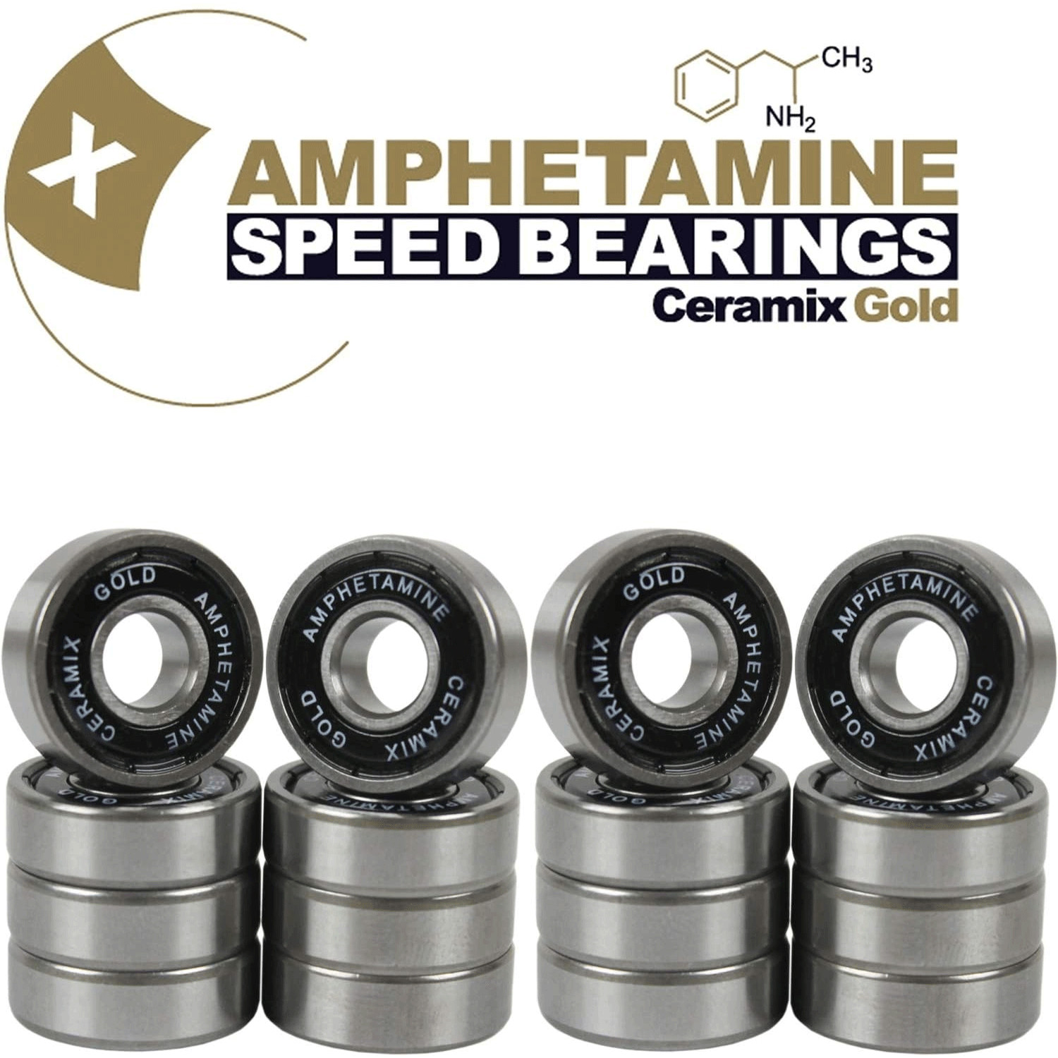 Amphetamine Inline Skate Speed Bearings Set of 16 Pre-Lubricated Ceramic Gold