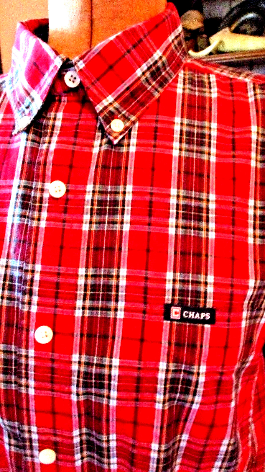как выглядит CHAPS EASY CARE Red Green Black PLAID Blend Long Sleeve LOGO Button SHIRT/Size L фото