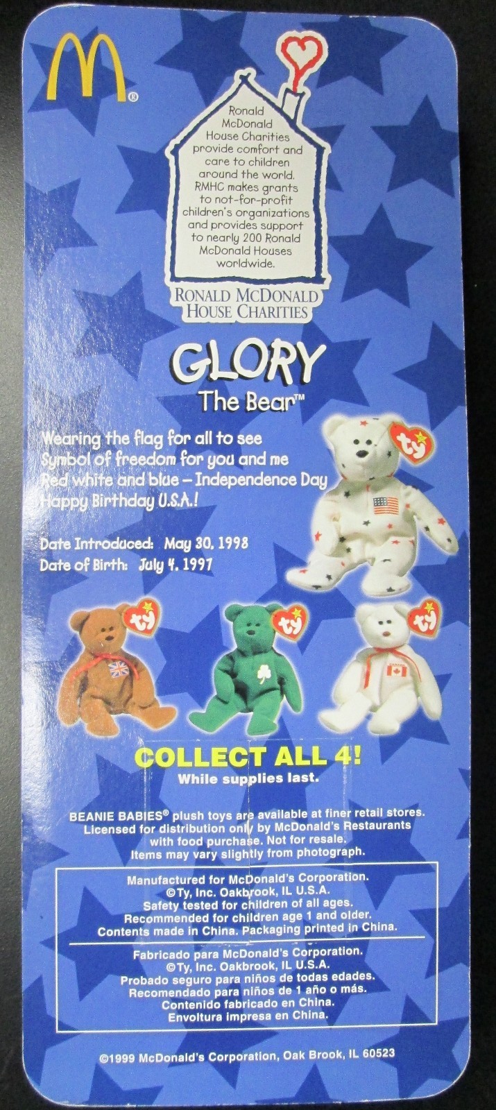 как выглядит TY McDONALDS BEANIE BABY GLORY THE BEAR MINT IN PACKAGE WITH ERRORS фото