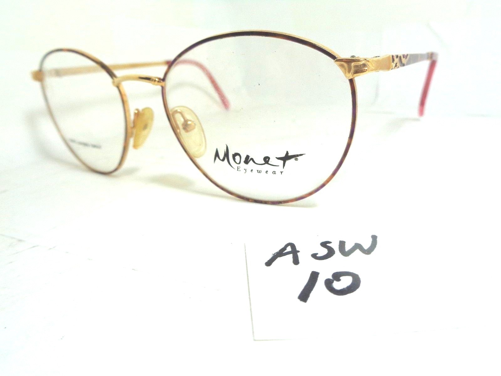 как выглядит Nos Vtg 1990s MONET Eyeglass Frame MT-59 LAV Marine Brown Gold Violet ASW-10 фото