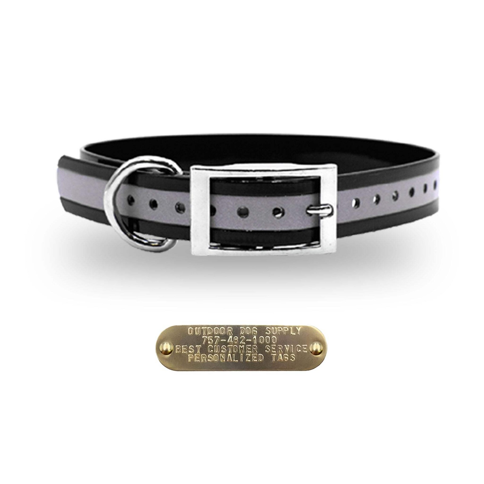 Extra Long 1 Reflective Premium Glow Tuff D Ring Dog Collar with Brass Name Pla
