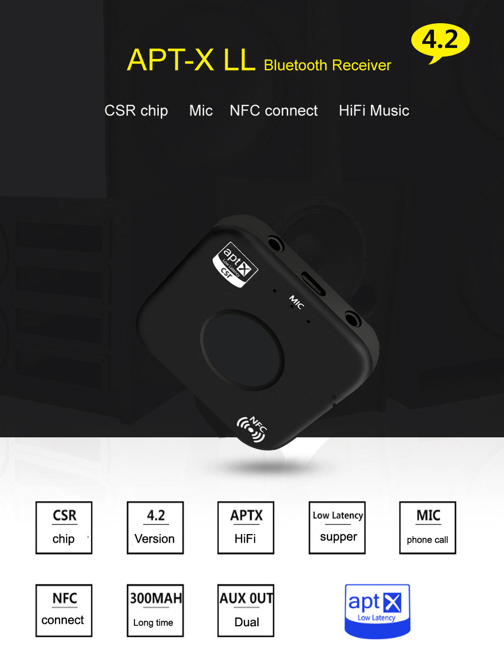 Wireless Audio Receiver Adapter Bluetooth 4.2 Receiver APT-X NFC Built-in Micro