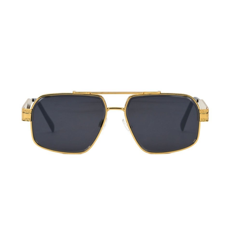 Men Sunglasses Classic Black Lens Square Fashion Design Gold Metal Frame Shades