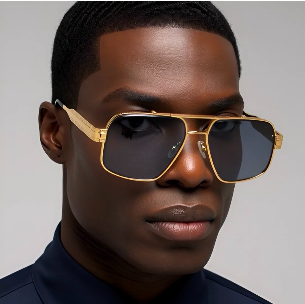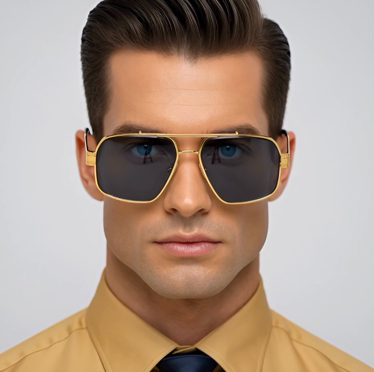 как выглядит Men Sunglasses Classic Black Lens Square Fashion Design Gold Metal Frame Shades фото