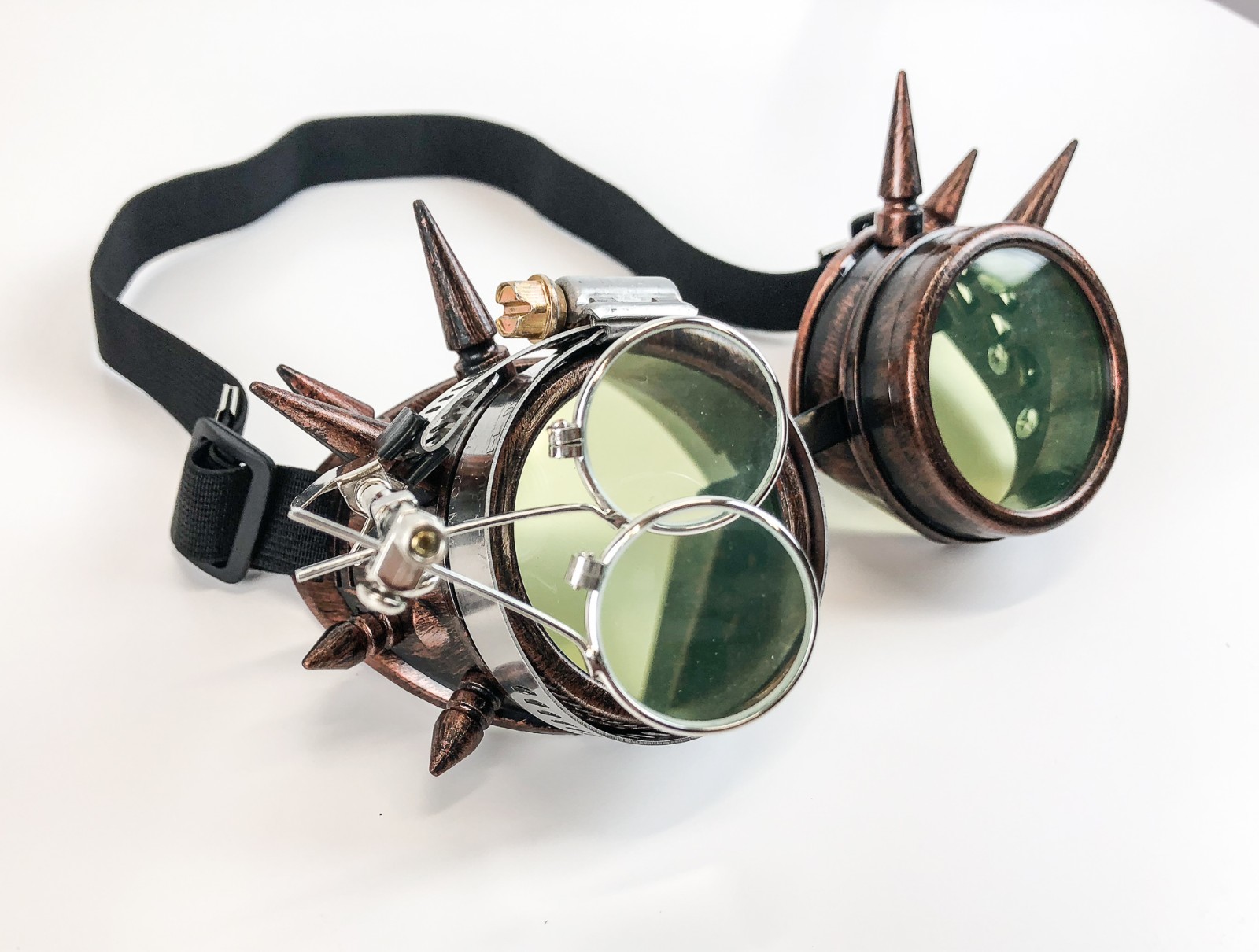 Steampunk Copper Goggles Spike Crazy Burning man Costume Mad Scientist 2X Green