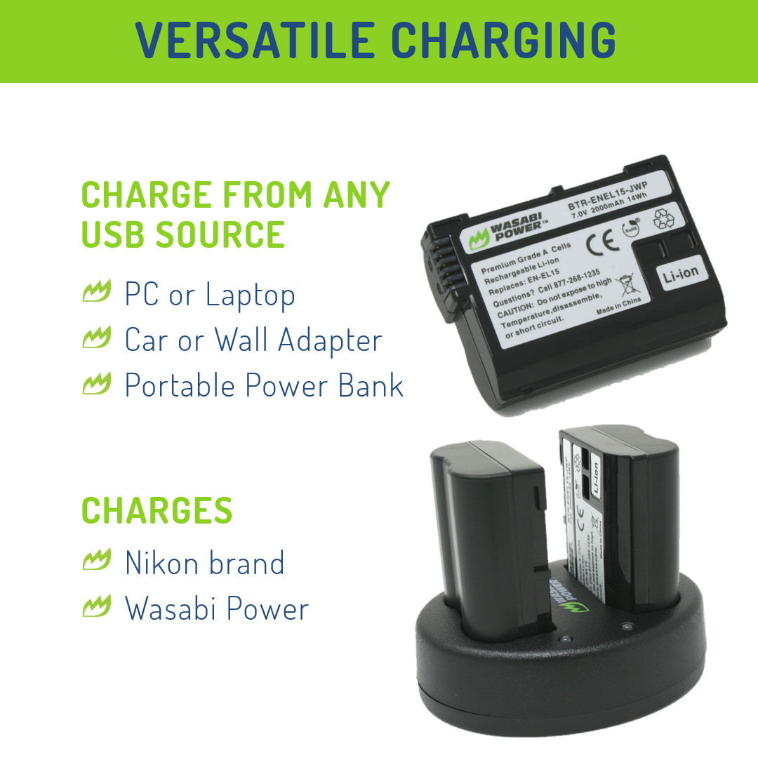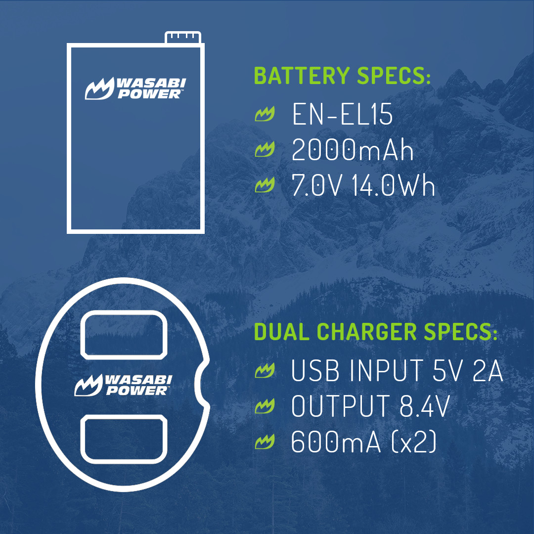 Wasabi Power Battery 2-Pack, Dual Charger for Nikon EN-EL15a, EN-EL15b, EN-EL15c