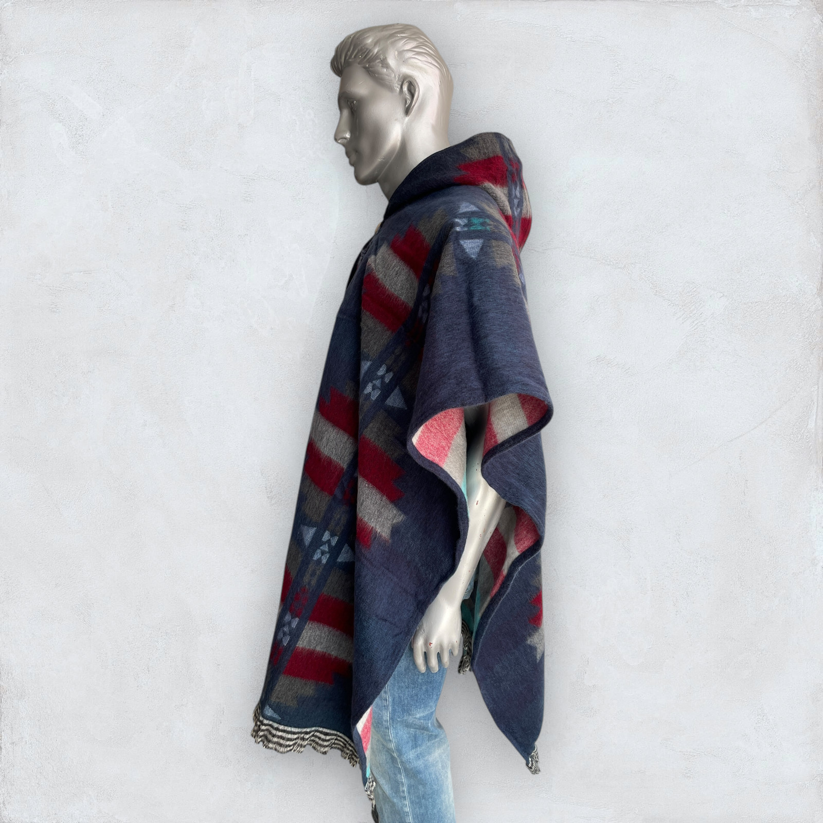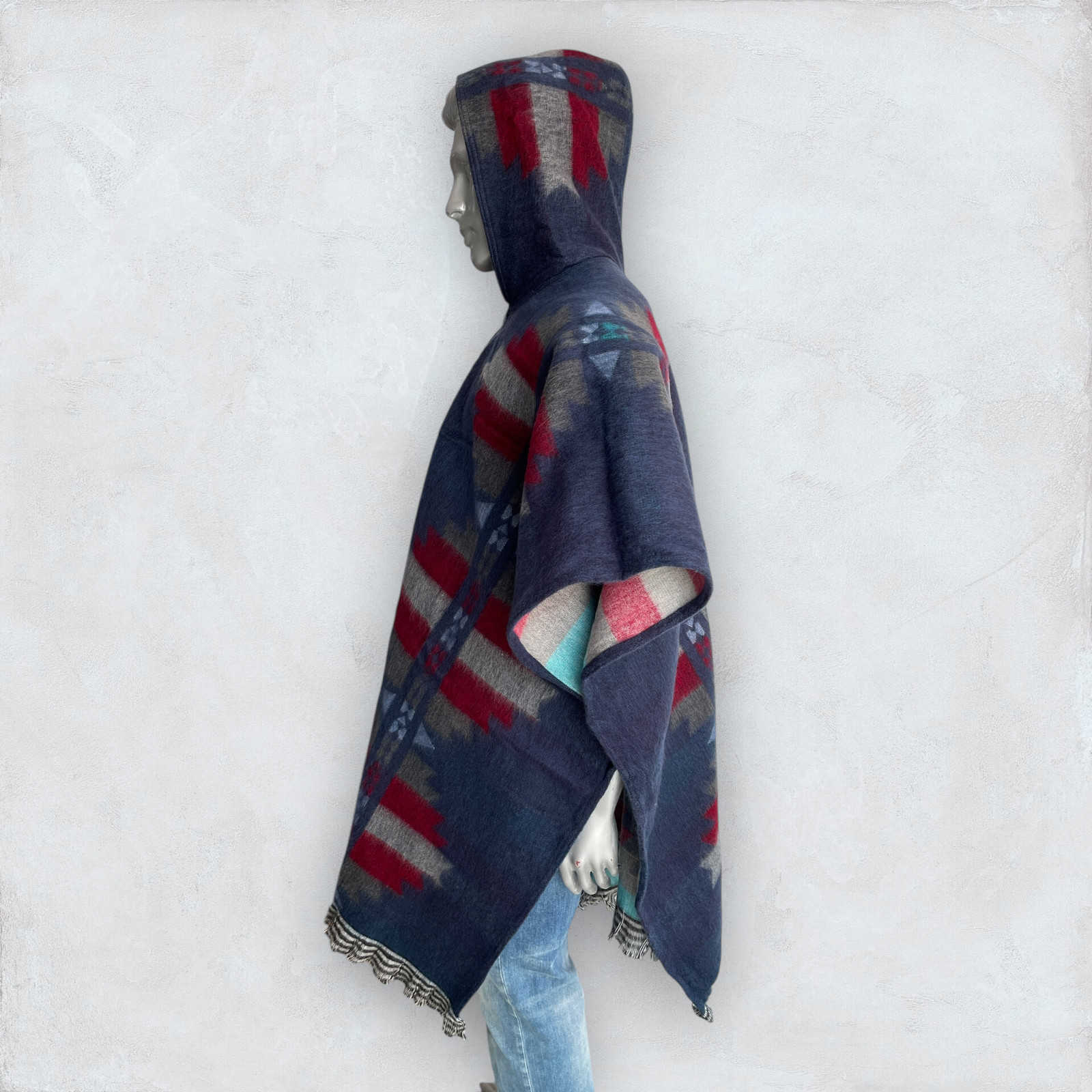 как выглядит Alpaca Poncho Hooded in blue Soft Comfortable Wool Navajo Design Handcrafted фото