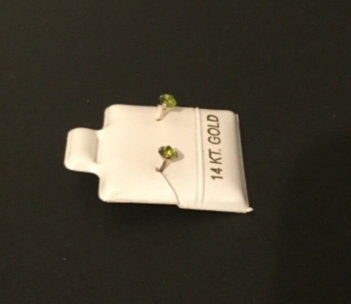 14k yellow gold earrings screw back round Light Green CZ stud 3mm stud babies