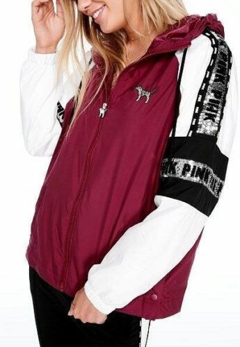 Victoria's Secret Pink Bling Campus Hoodie Anorak Jacket Ruby Merlot XS S M L