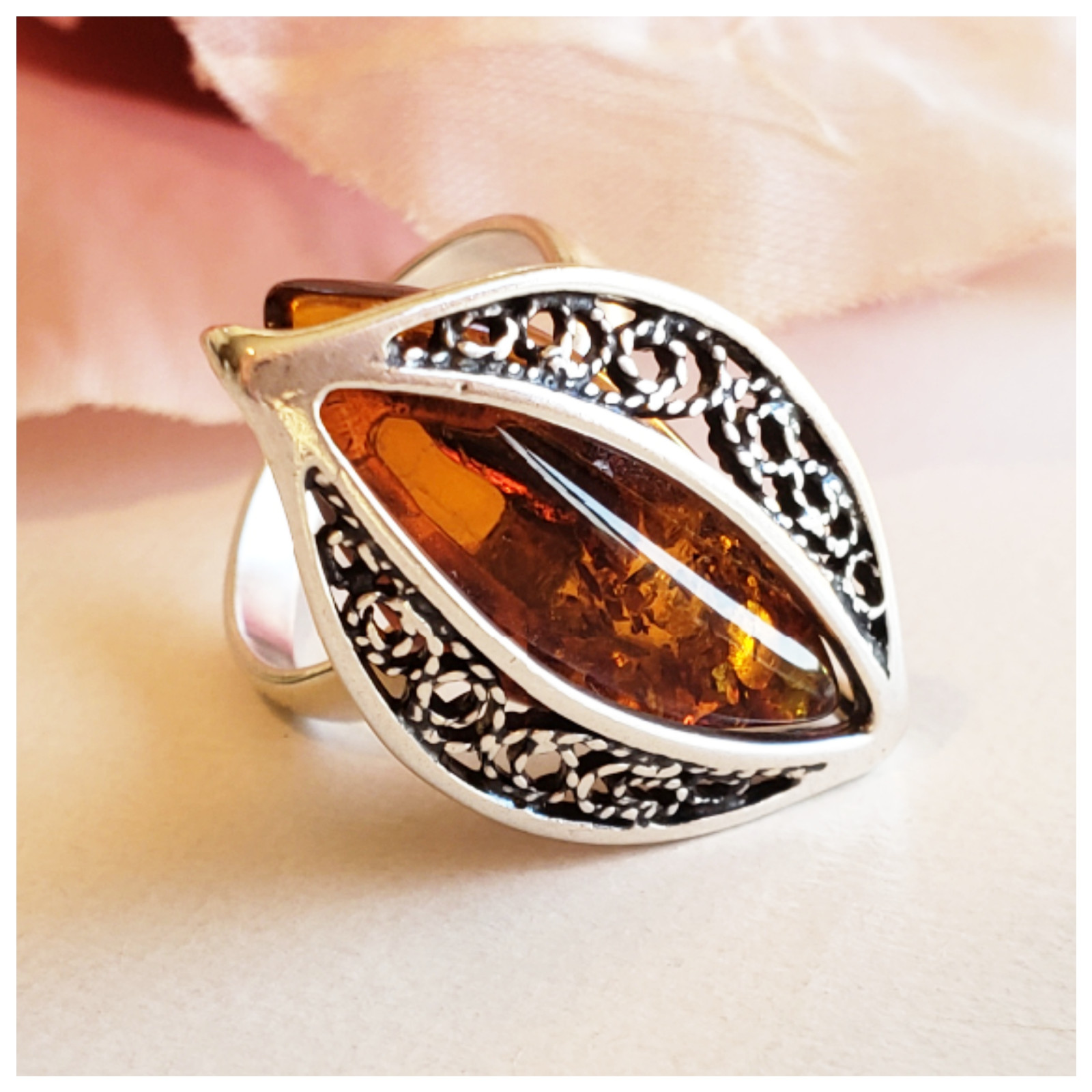 как выглядит BALTIC AMBER 100 925 STERLING SILVER RING GORGEOUS NATURAL Amber 5 gr SZ 6 фото