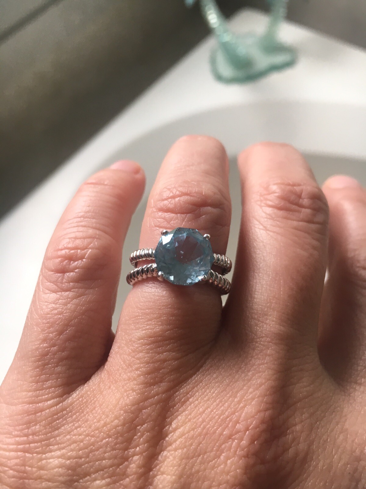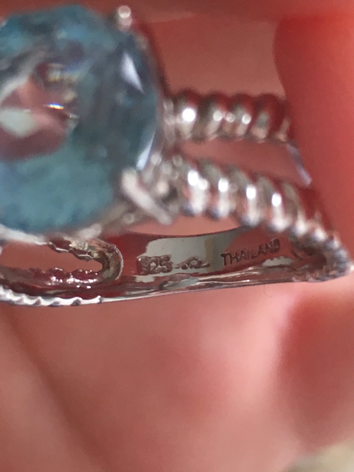 как выглядит GENUINE LARGE SKY BLUE TOPAZ STERLING RING W/TWISTED SPLIT SHANK BAND, SIZE 6 фото