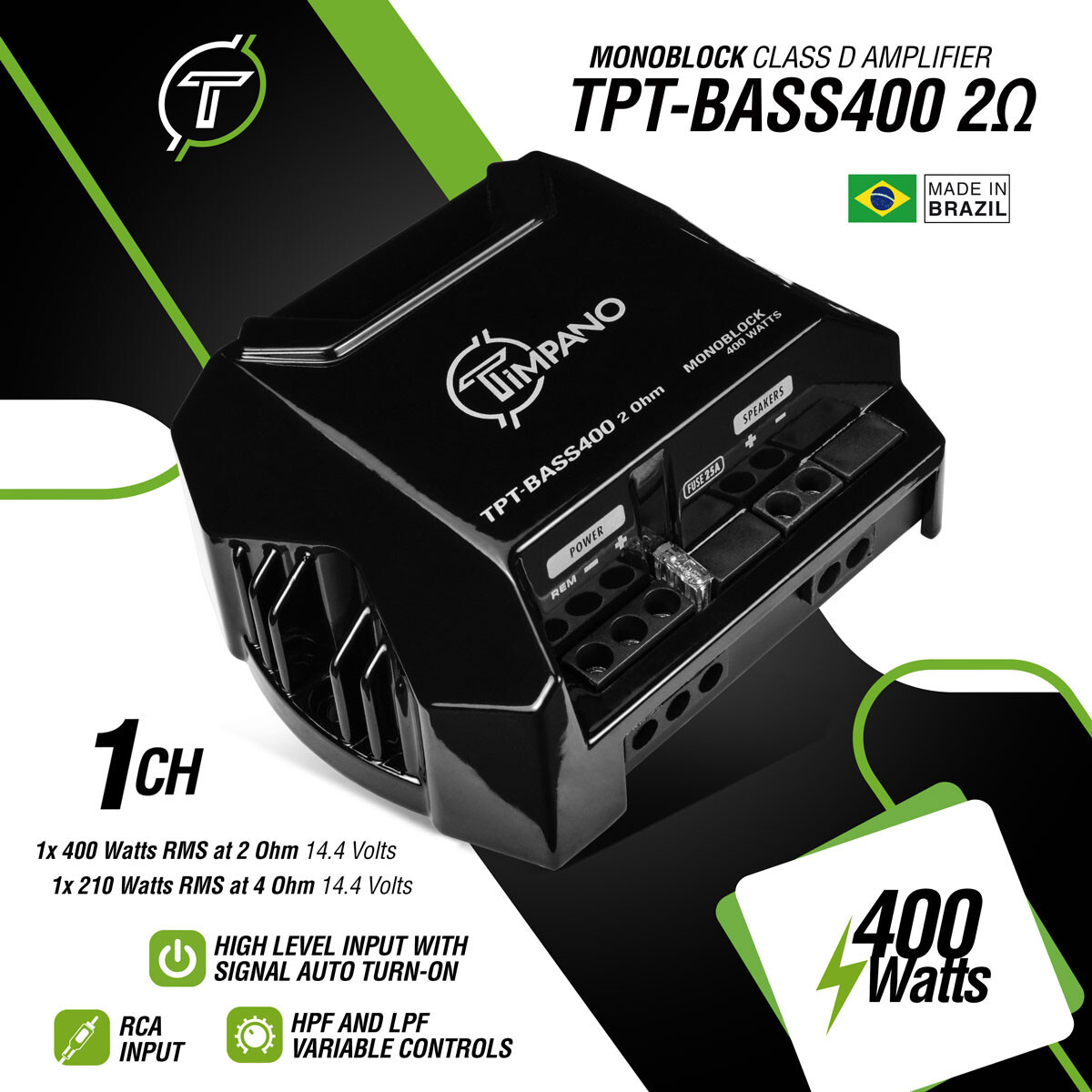 TIMPANO TPT-BASS400 2 Ohm 400 WATTS 1 CHANNEL CLASS D SUBWOOFER BASS AMPLIFIER