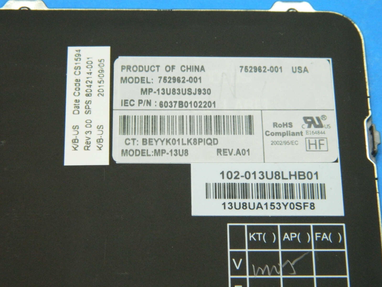 752962-001 Elitebook Folio 1020 G1 US Keyboard OEM